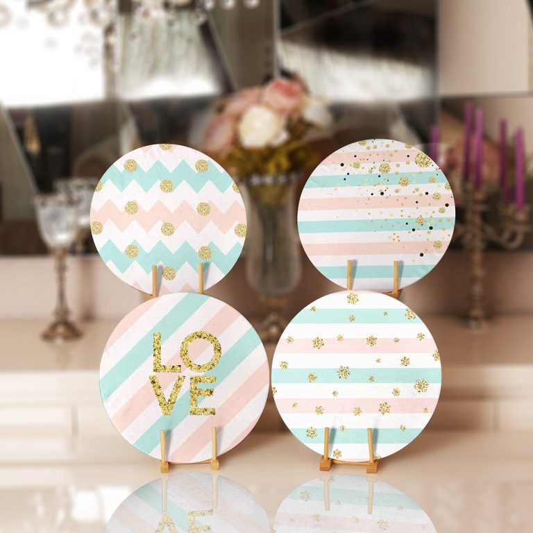 4’lü Renkli Çizgi Zeminli Gold Detaylı Servis Altlığı & Supla