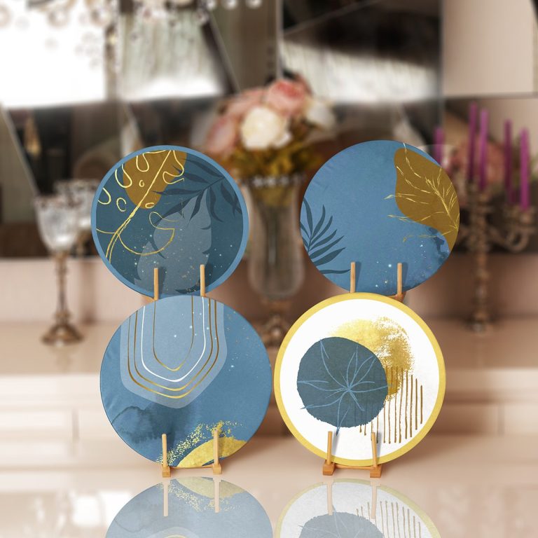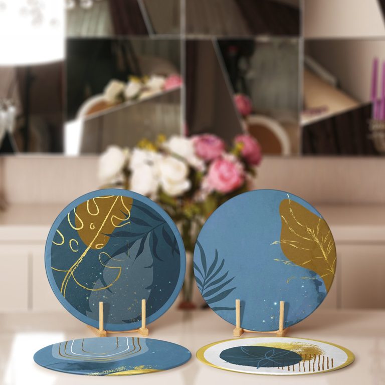 4’lü Renkli Egzotik Yaprak Tasarımlı Servis Altlığı & Supla