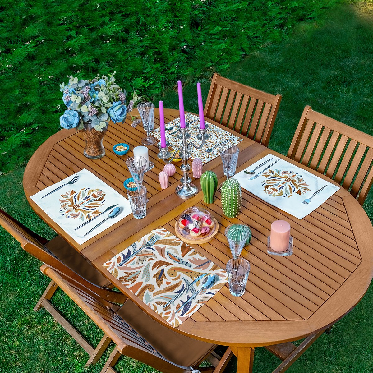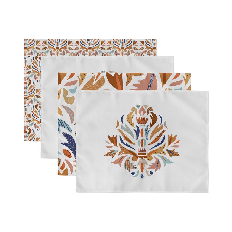 4’lü Renkli Etnik Motifli Dijital Baskılı Özel Tasarımlı Sunumluk – Sunum Altlığı – Amerikan Servis Seti