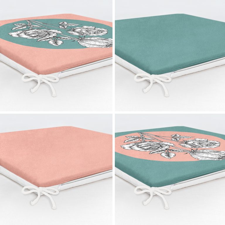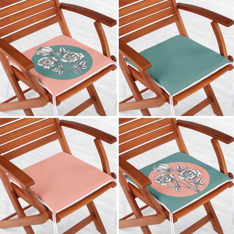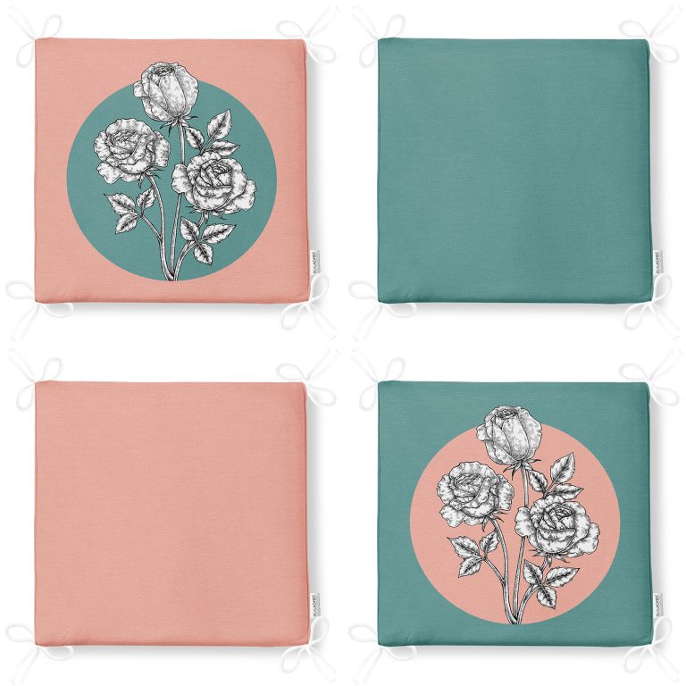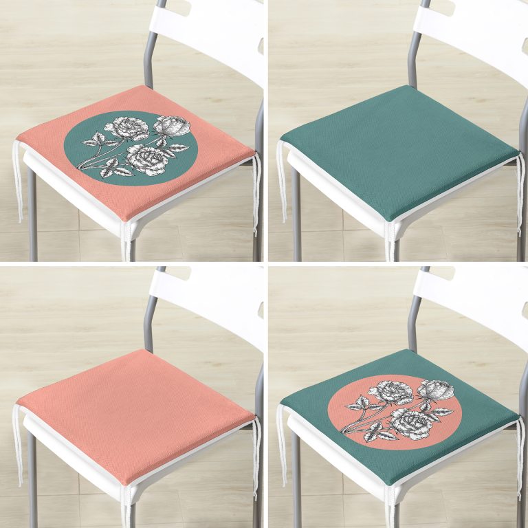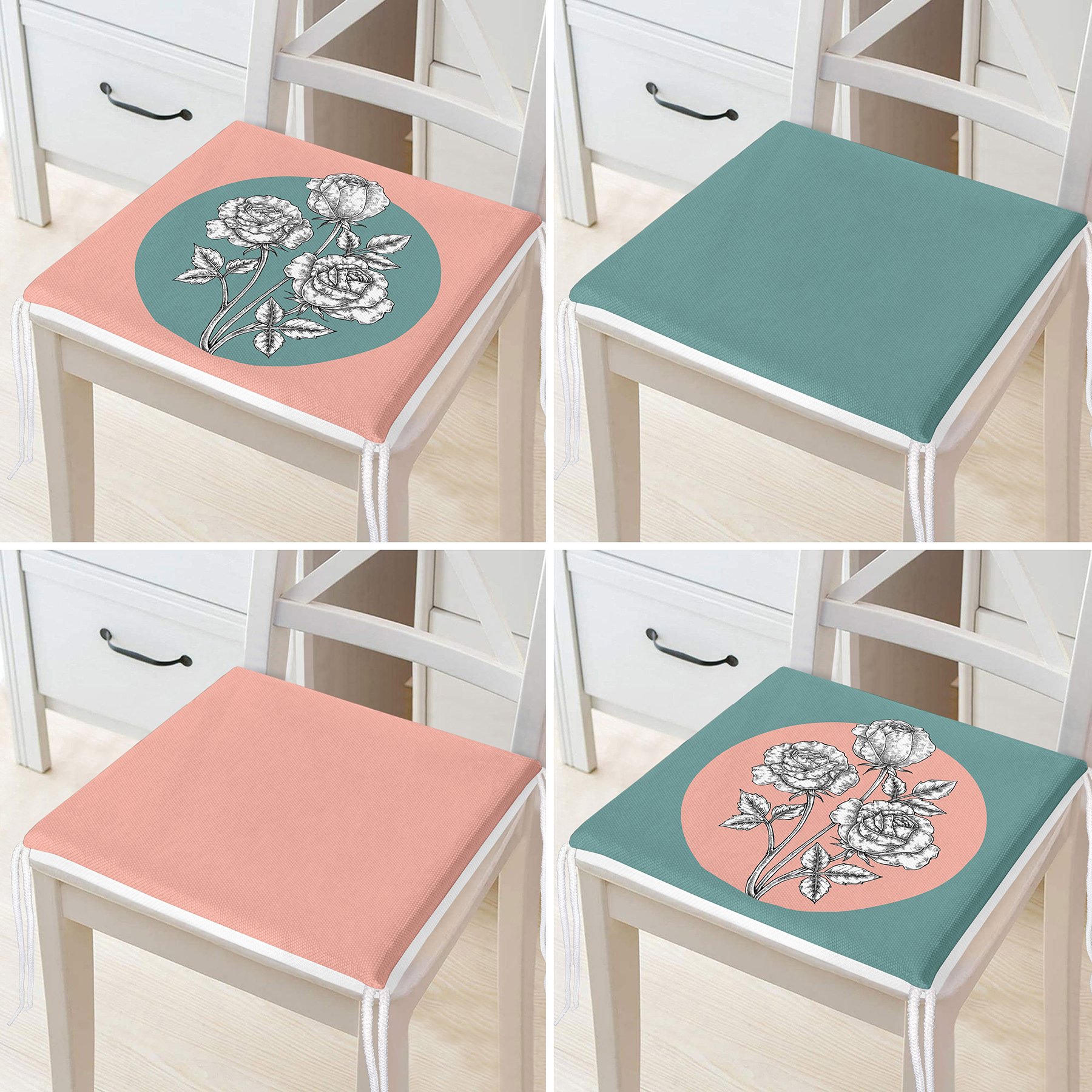 4’lü Renkli Karakalem Çiçek Motifli Fermuarlı Sandalye Minderi Seti