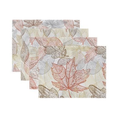 4’lü Renkli Sonbahar Yaprakları Motifli Amerikan Servis Seti
