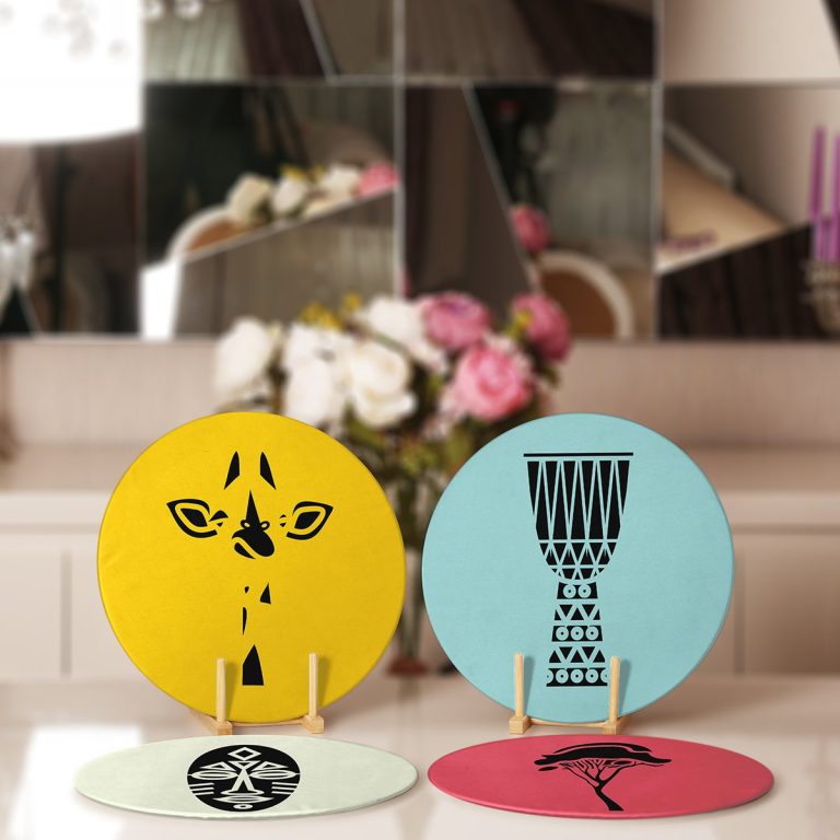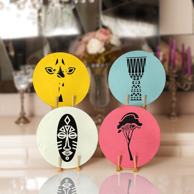4’lü Renkli Zemin Etnik Çizim Tasarımlı Servis Altlığı & Supla