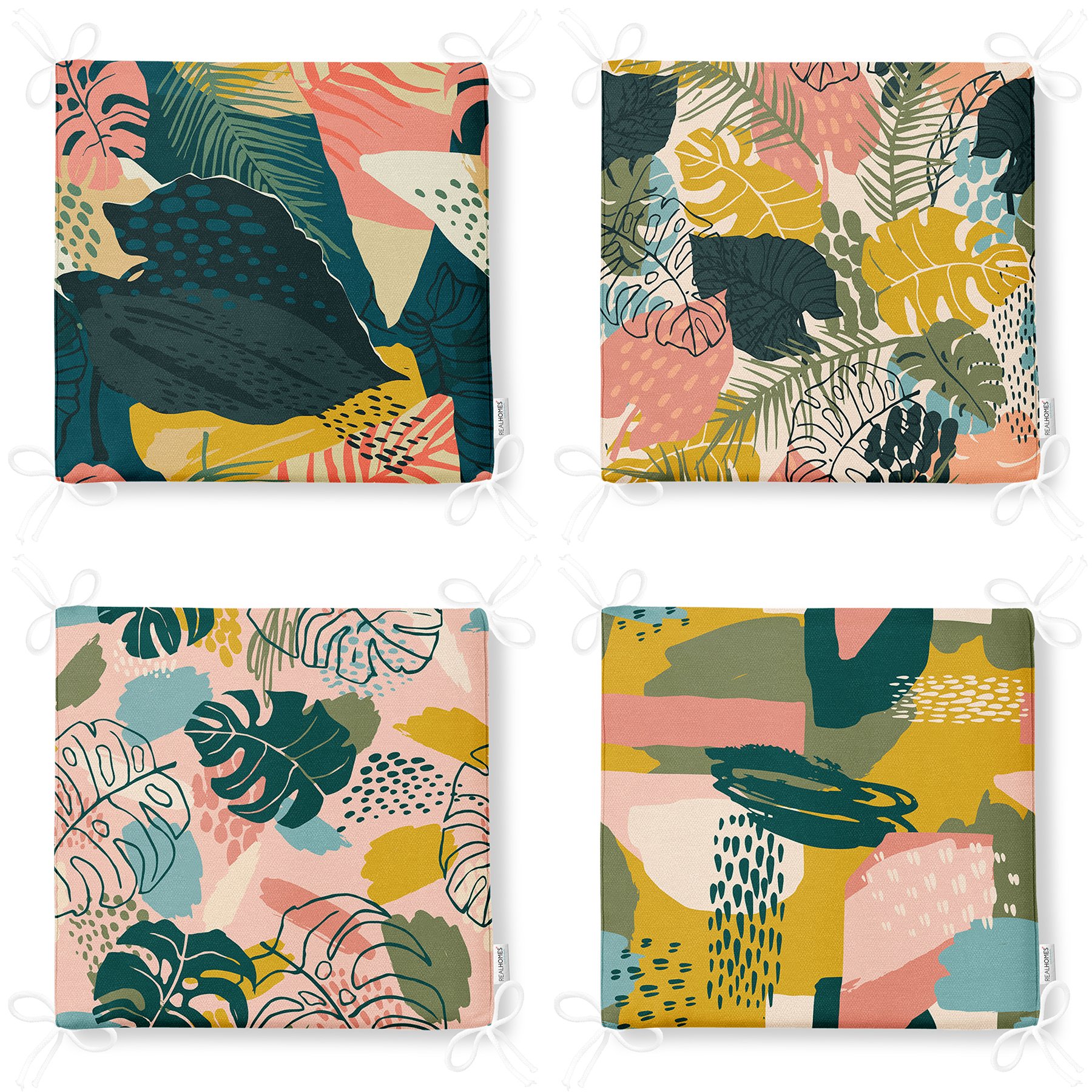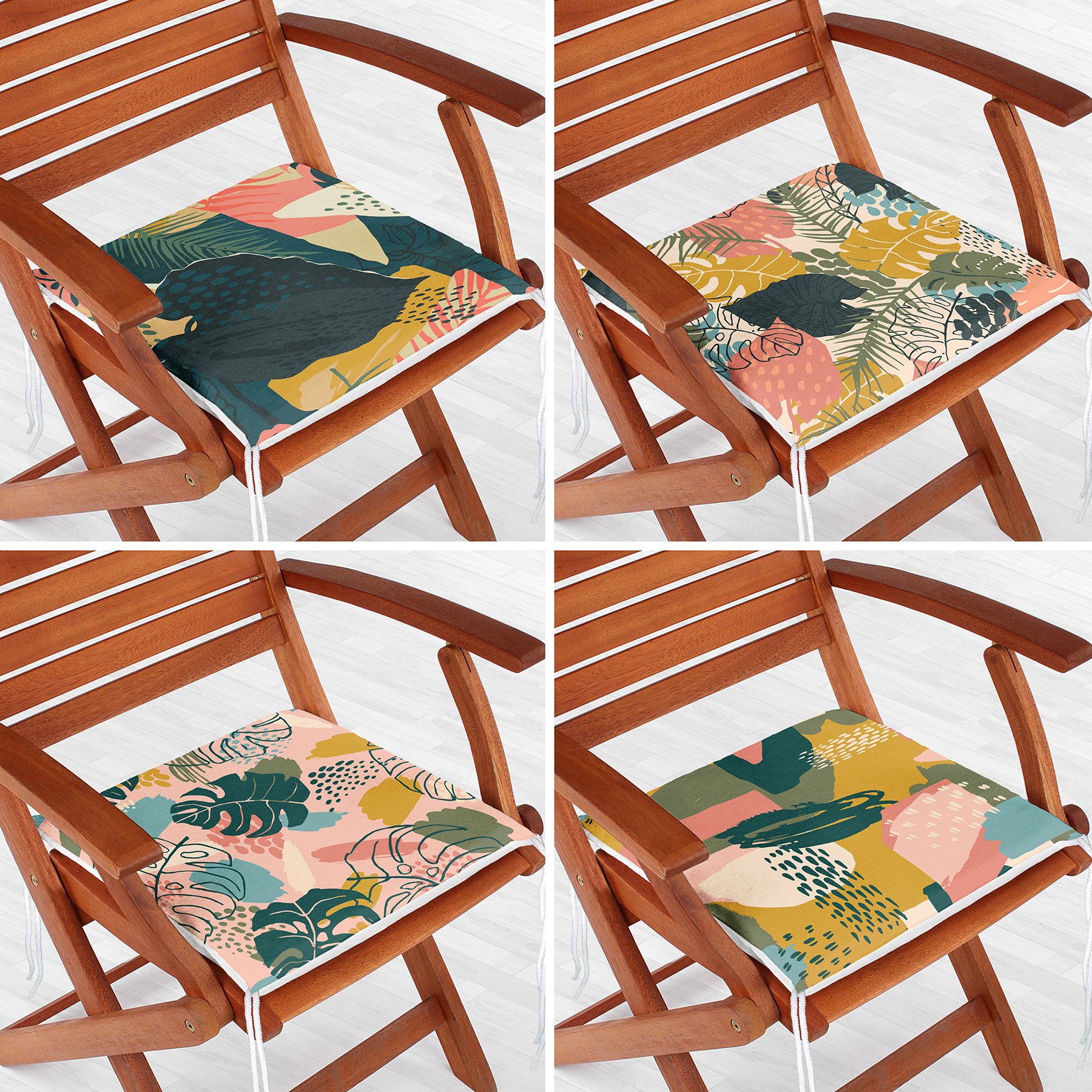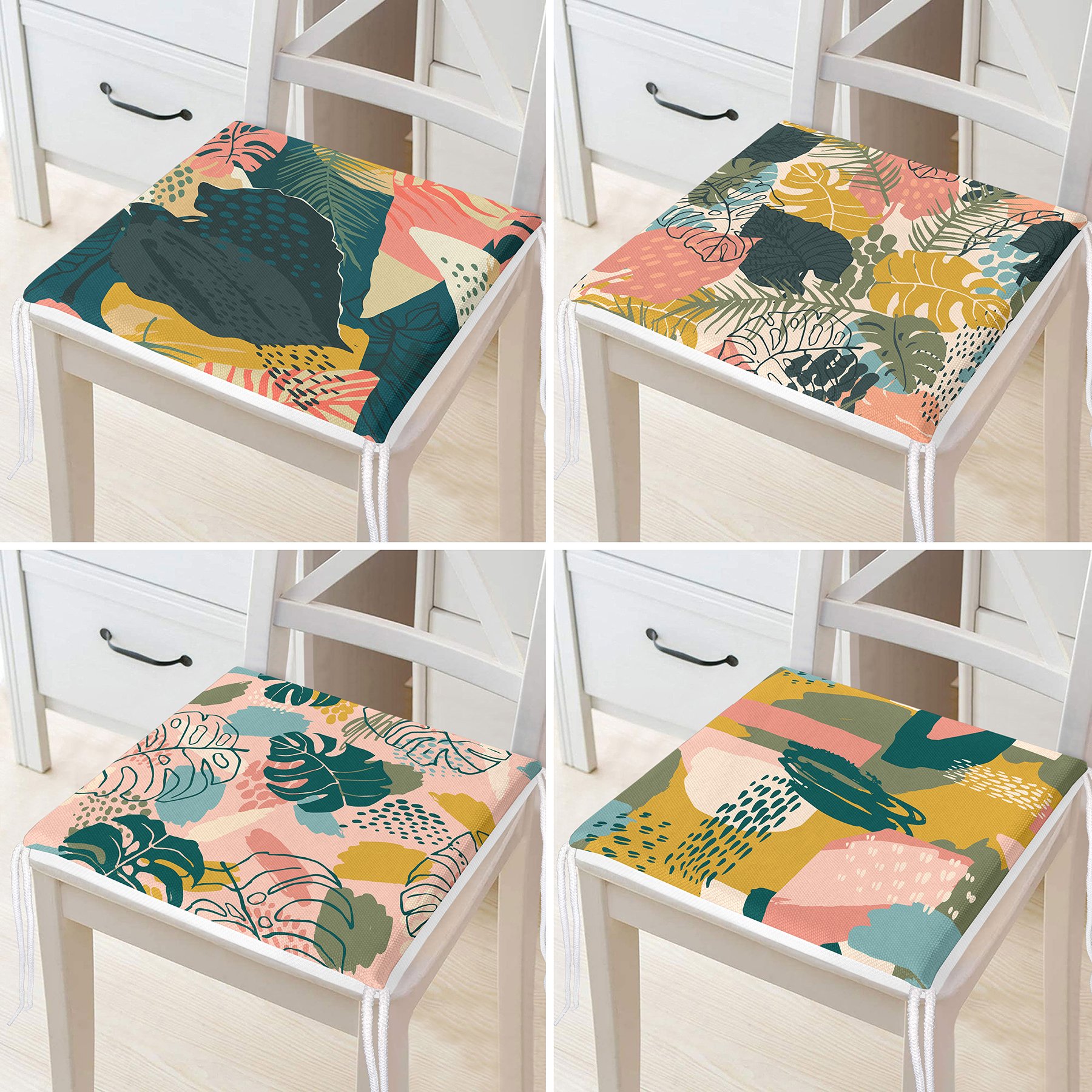4’lü Renkli Zemin Üzerinde Onedraw Çizimli Modern Fermuarlı Sandalye Minderi Seti