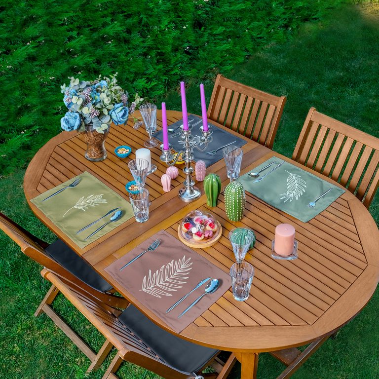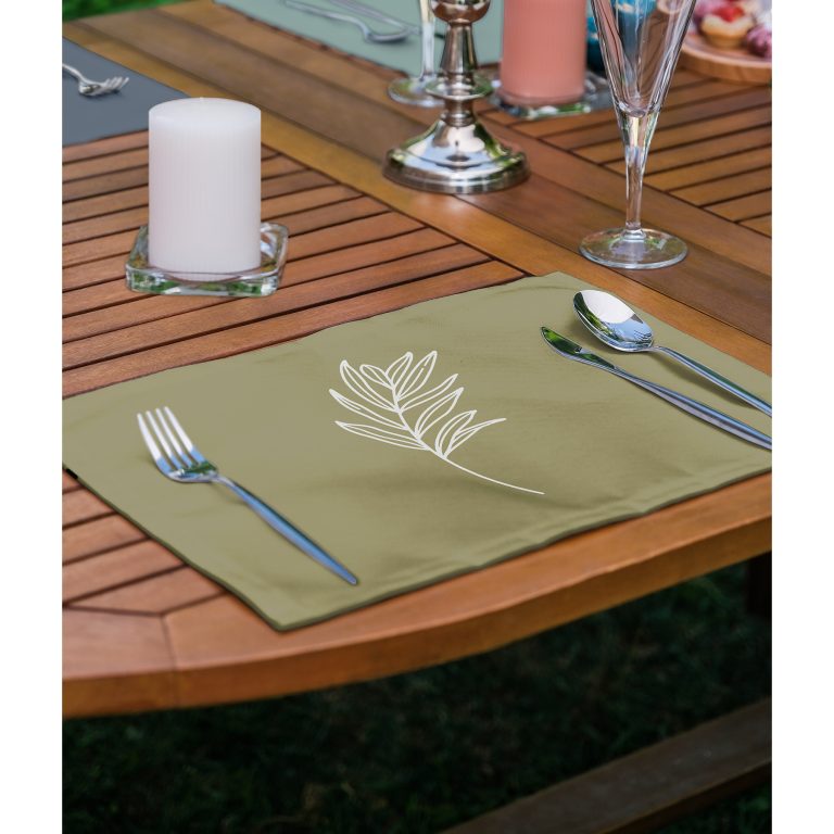 4’lü Renkli Zeminler Tropik Yaprak Figürlü Özel Tasarım Sunumluk – Sunum Altlığı – Amerikan Servis Seti