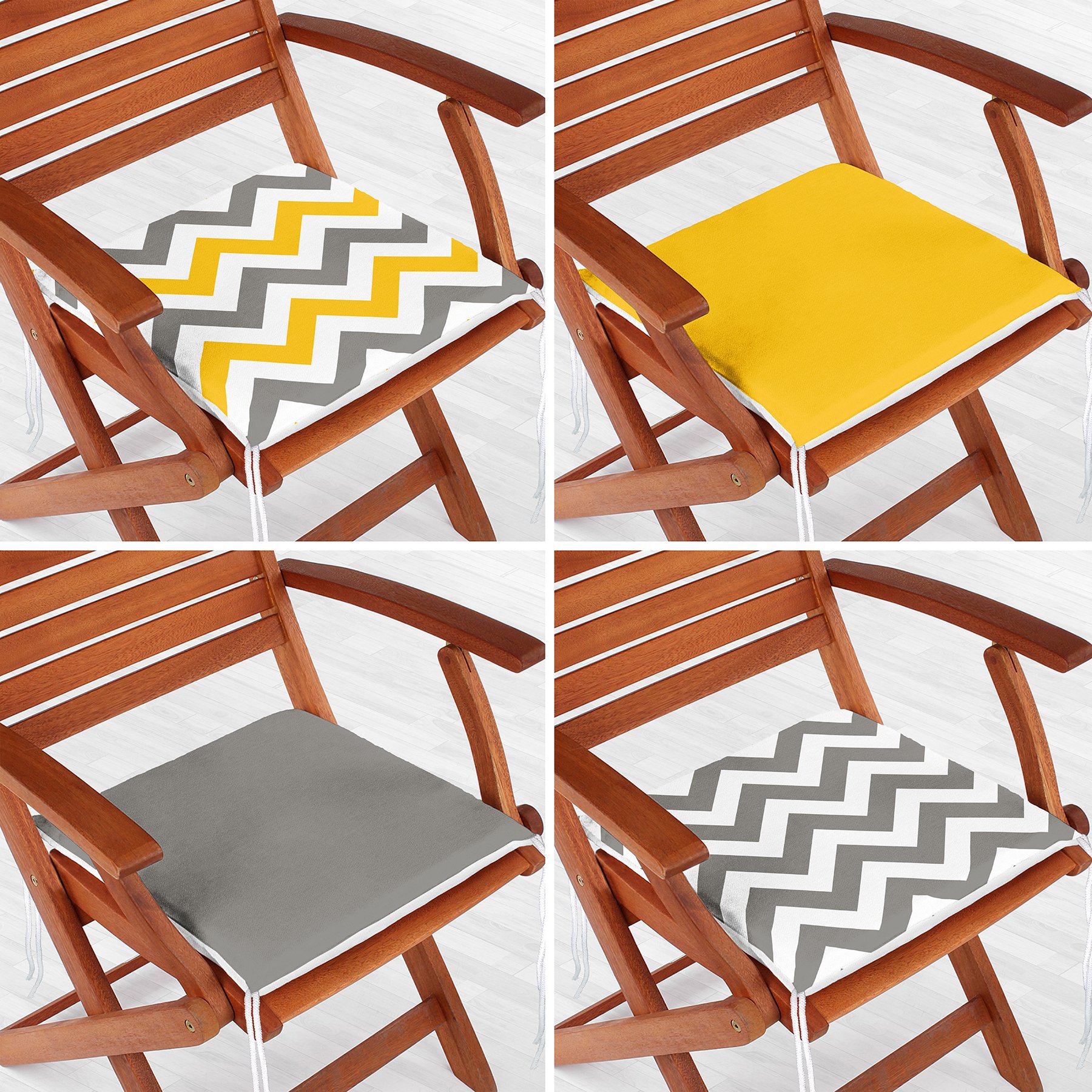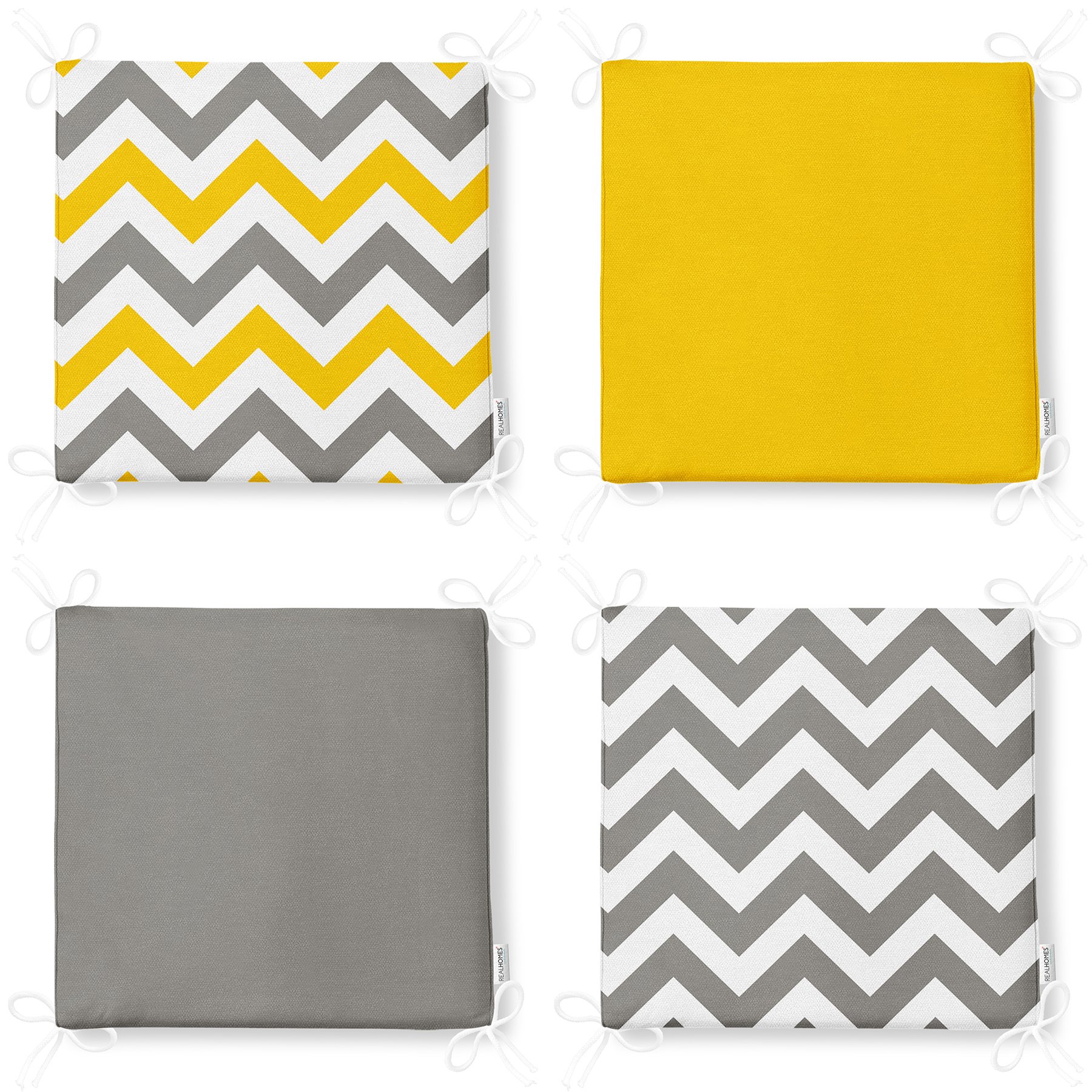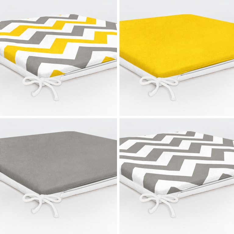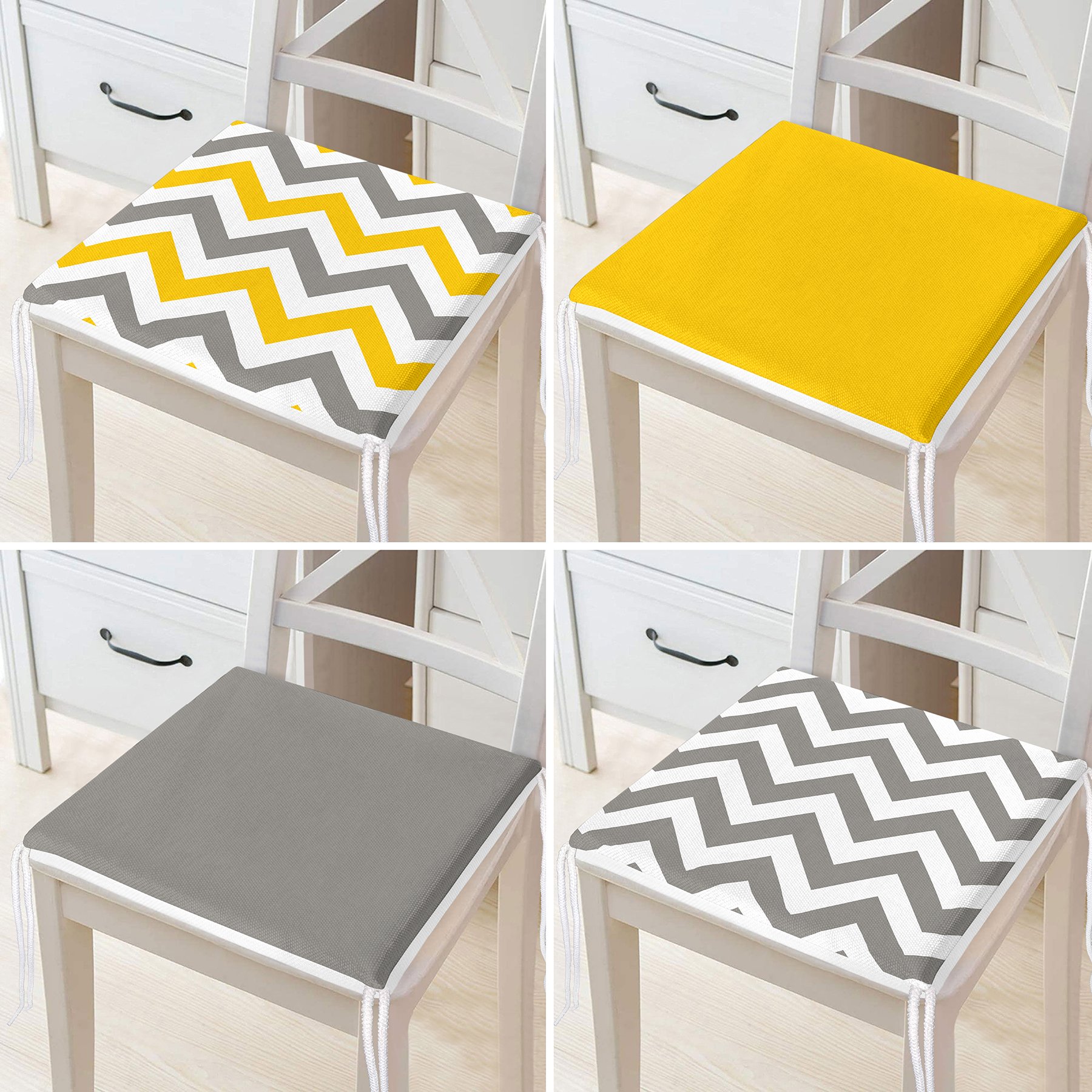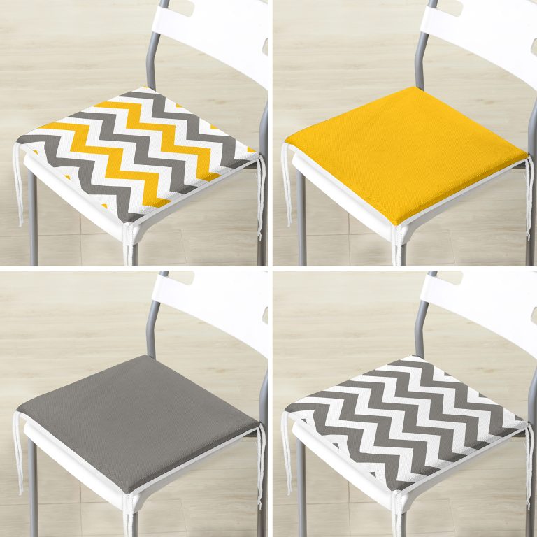 4’lü Sarı ve Grinin Uyumlu Fermuarlı Sandalye Minderi Seti