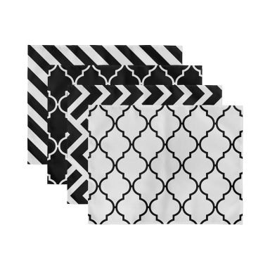 4’lü Siyah Beyaz Geometrik Çizimli Amerikan Servis Seti