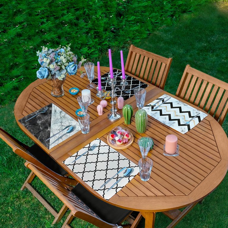 4’lü Siyah Beyaz Ogea Motifli Mermer Tasarımlı Sunumluk – Sunum Altlığı – Amerikan Servis Seti