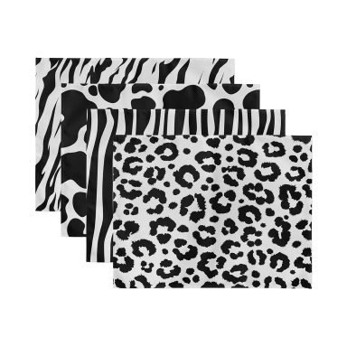 4’lü Siyah Beyaz Zebra Desenli Amerikan Servis Seti