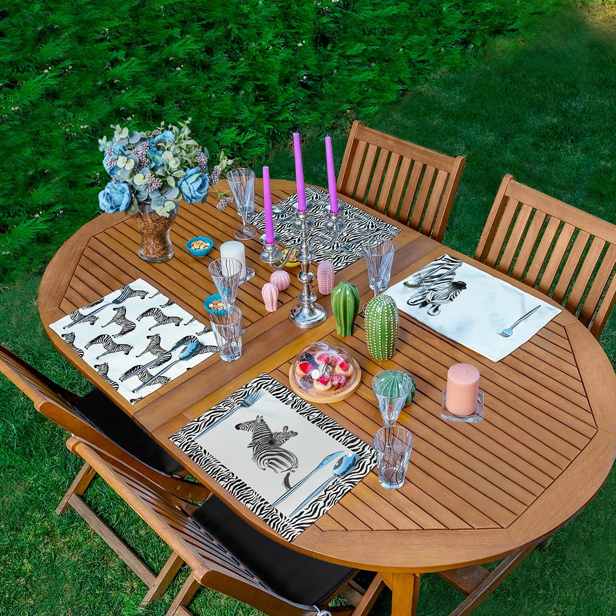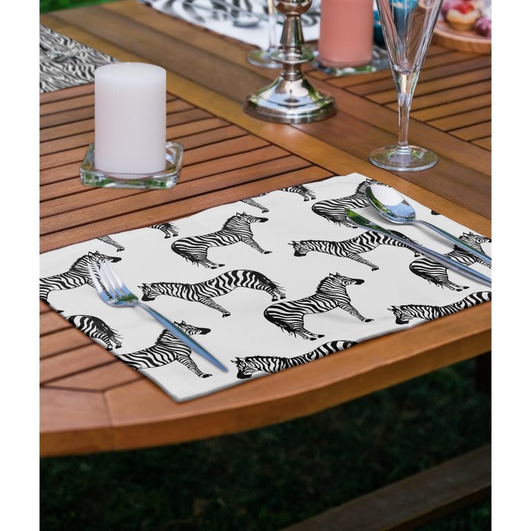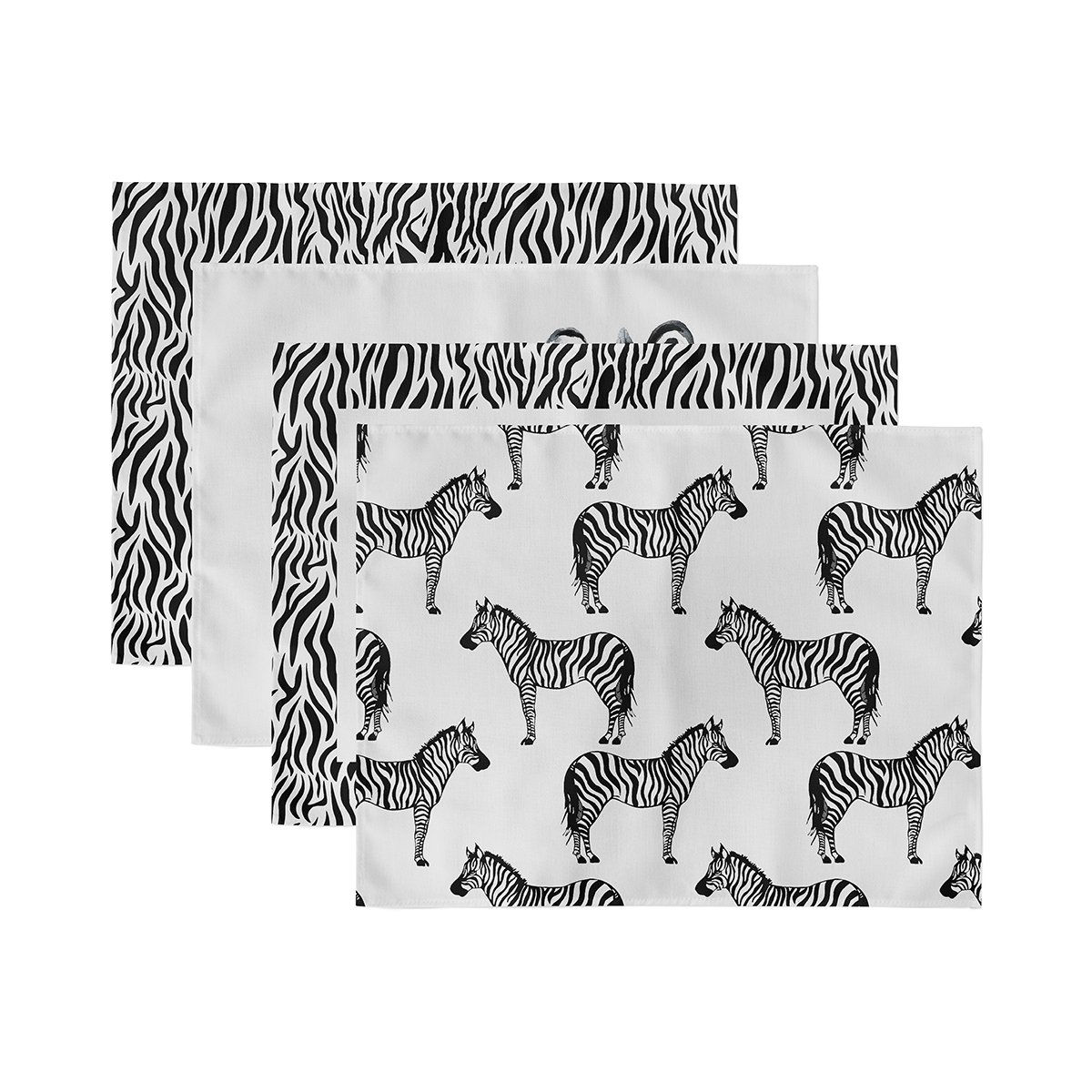 4’lü Siyah Beyaz Zebra Temalı Özel Tasarım Dijital Baskılı Modern Sunumluk – Sunum Altlığı – Amerikan Servis Seti