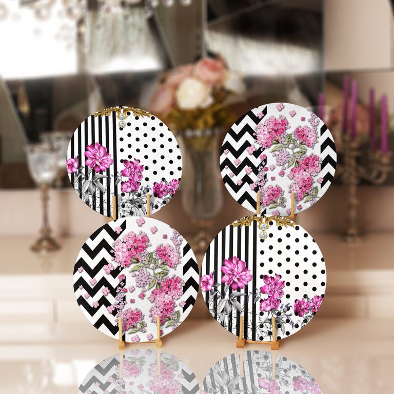 4’lü Siyah Beyaz Zemin Çiçek Tasarımlı Servis Altlığı & Supla