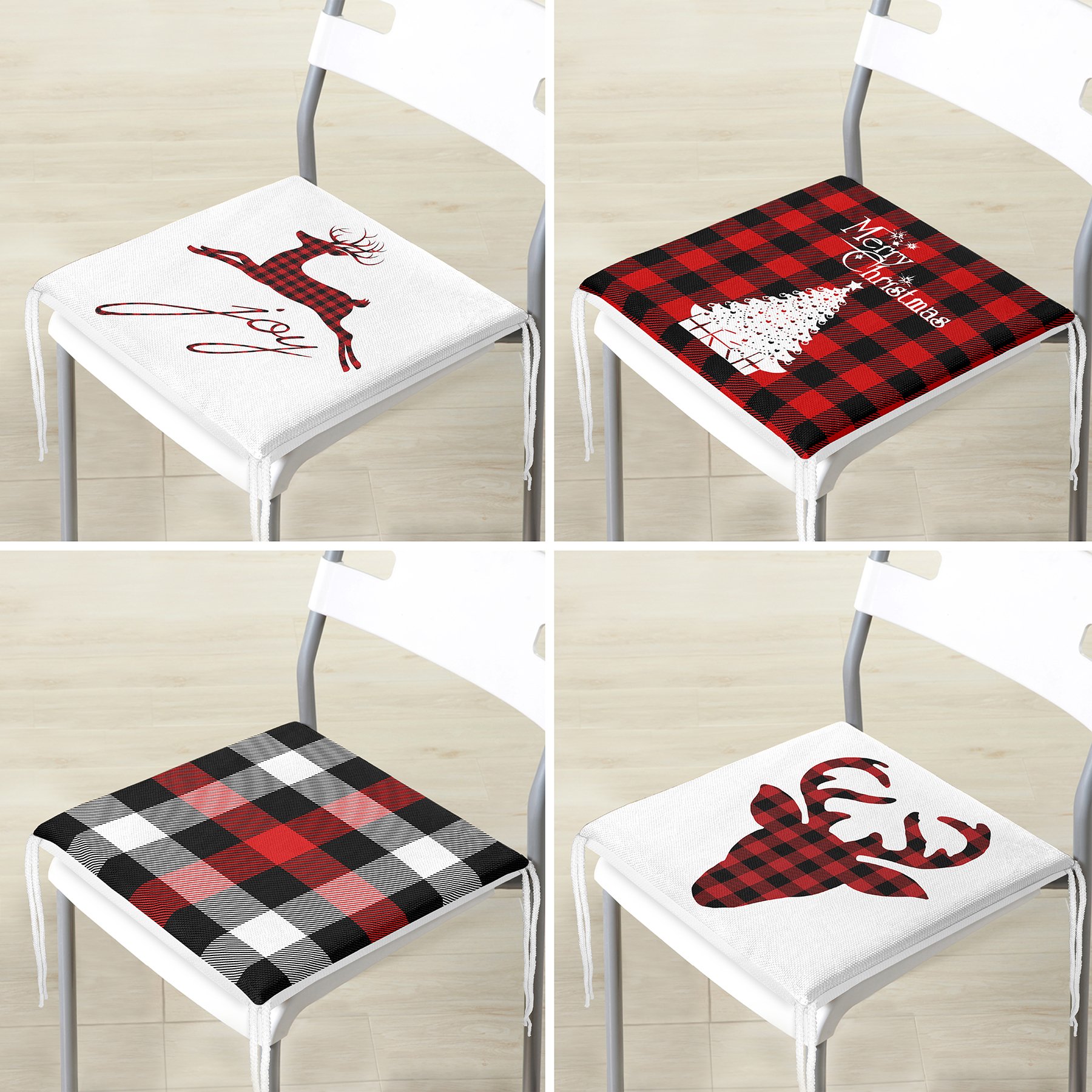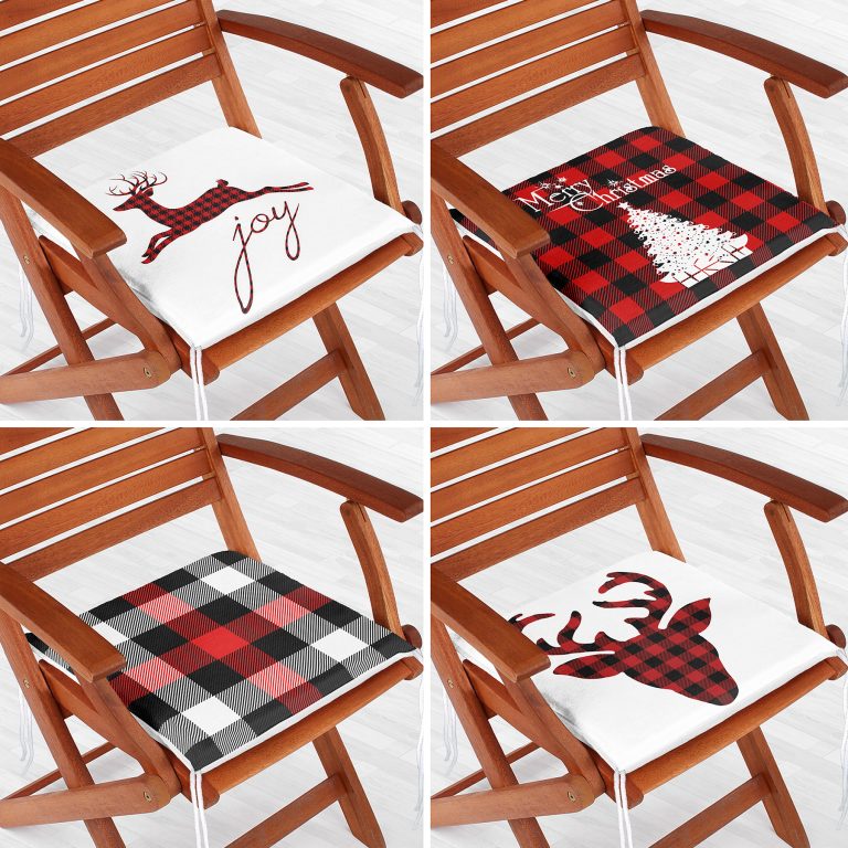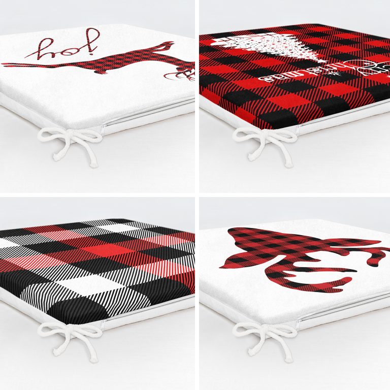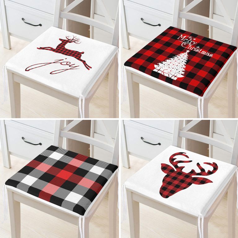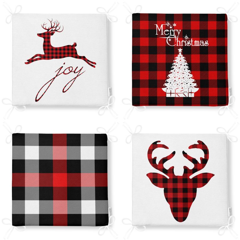 4’lü Yılbaşı Temalı Ekoseli Fermuarlı Sandalye Minderi Seti