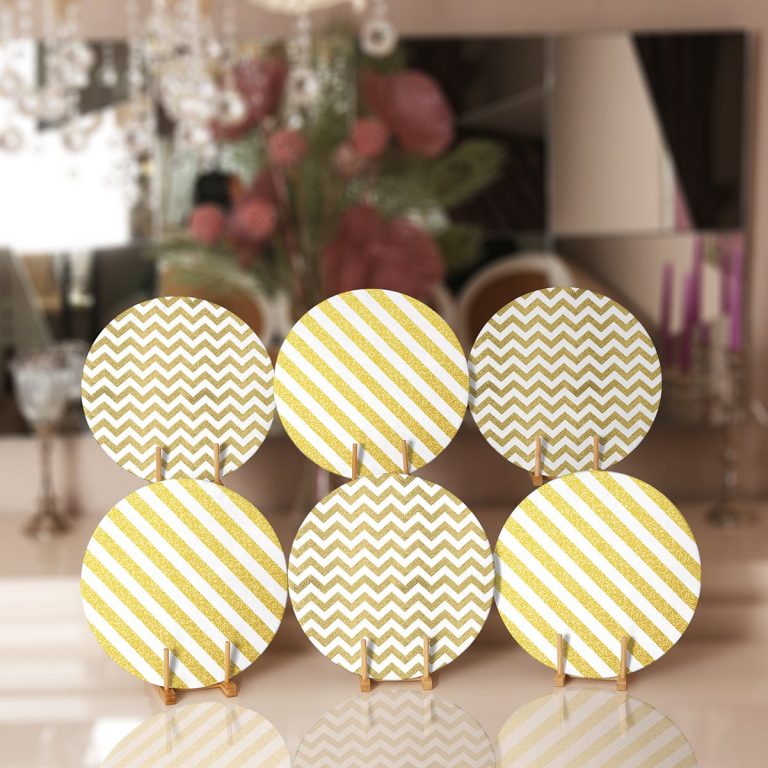 6’lı Altın Varaklı Çizgiler Özel Tasarım Servis Altlığı & Supla