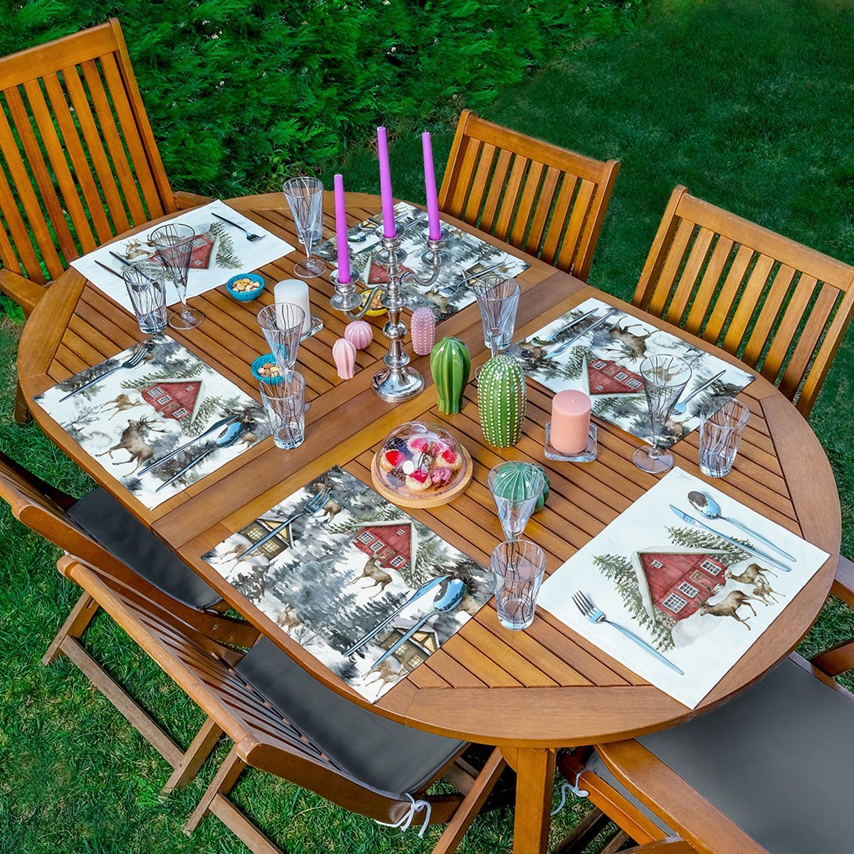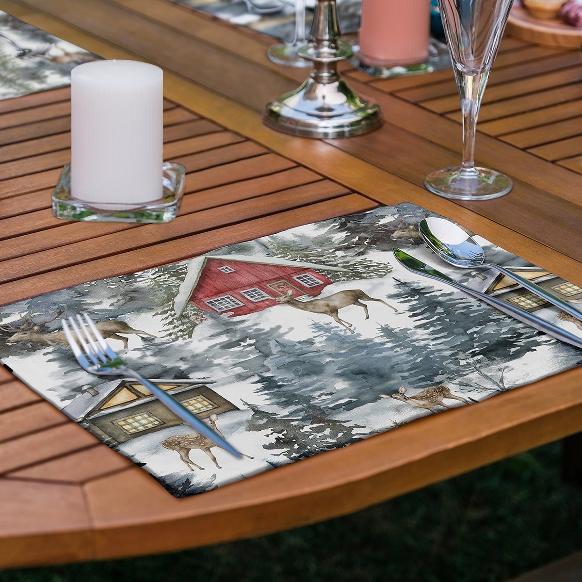 6’lı Bağ Evi Özel Tasarım Kış Temalı Amerikan Servis Seti
