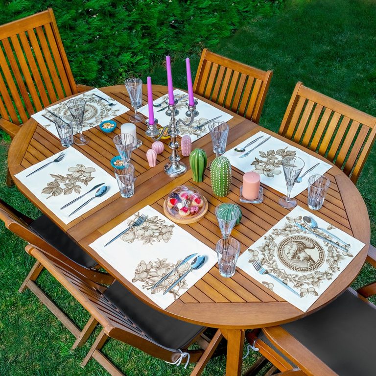6’lı Beyaz Zemin Kara Kalem Çizimli Amerikan Servis Seti