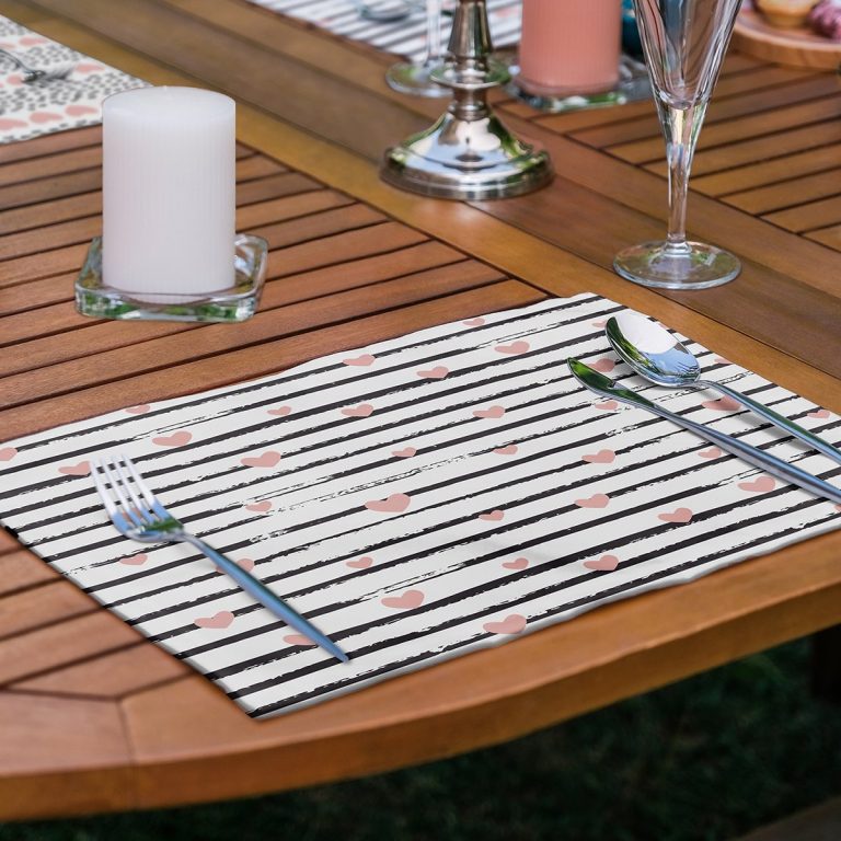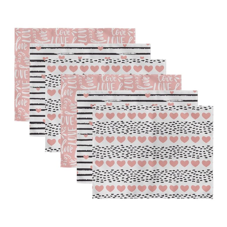 6’lı Çizgili Kalp Tasarımlı Aşk Temalı Amerikan Servis Seti