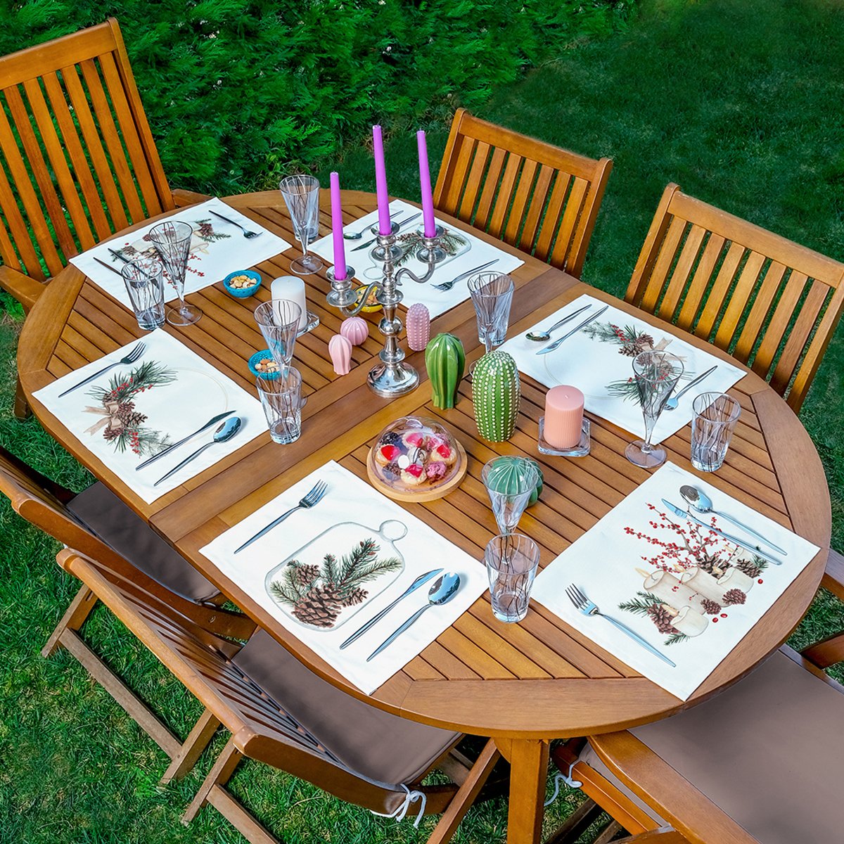 6’lı Kozalak & Mum Tasarımlı Amerikan Servis Seti