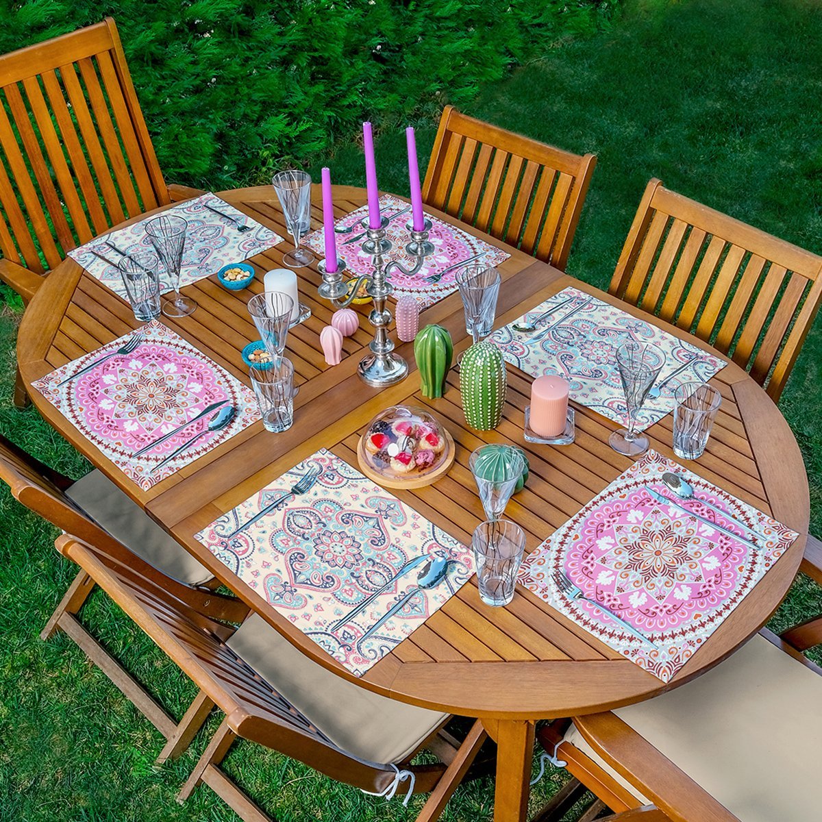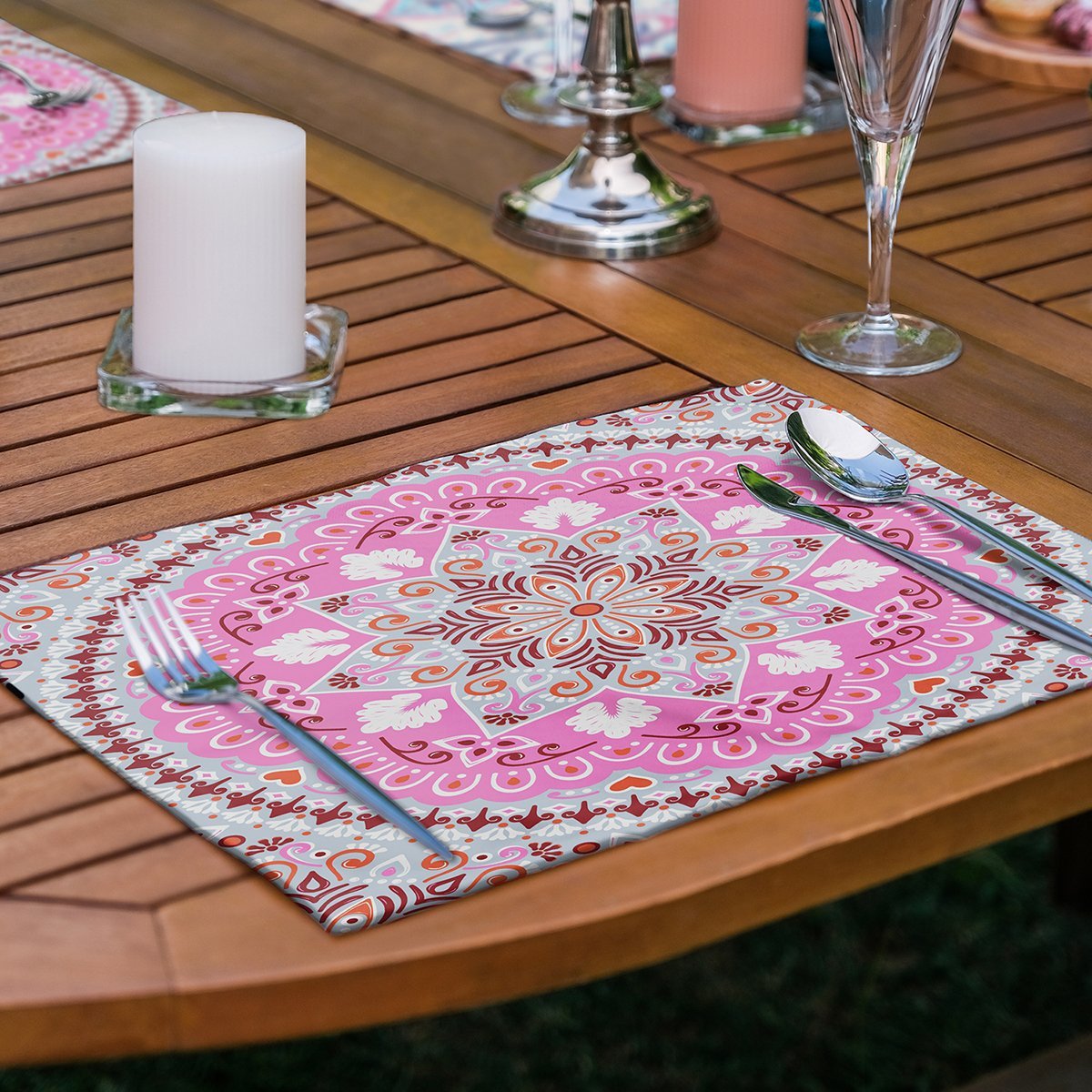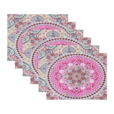 6’lı Krem & Pembe Mandala Özel Tasarımlı Amerikan Servis Seti