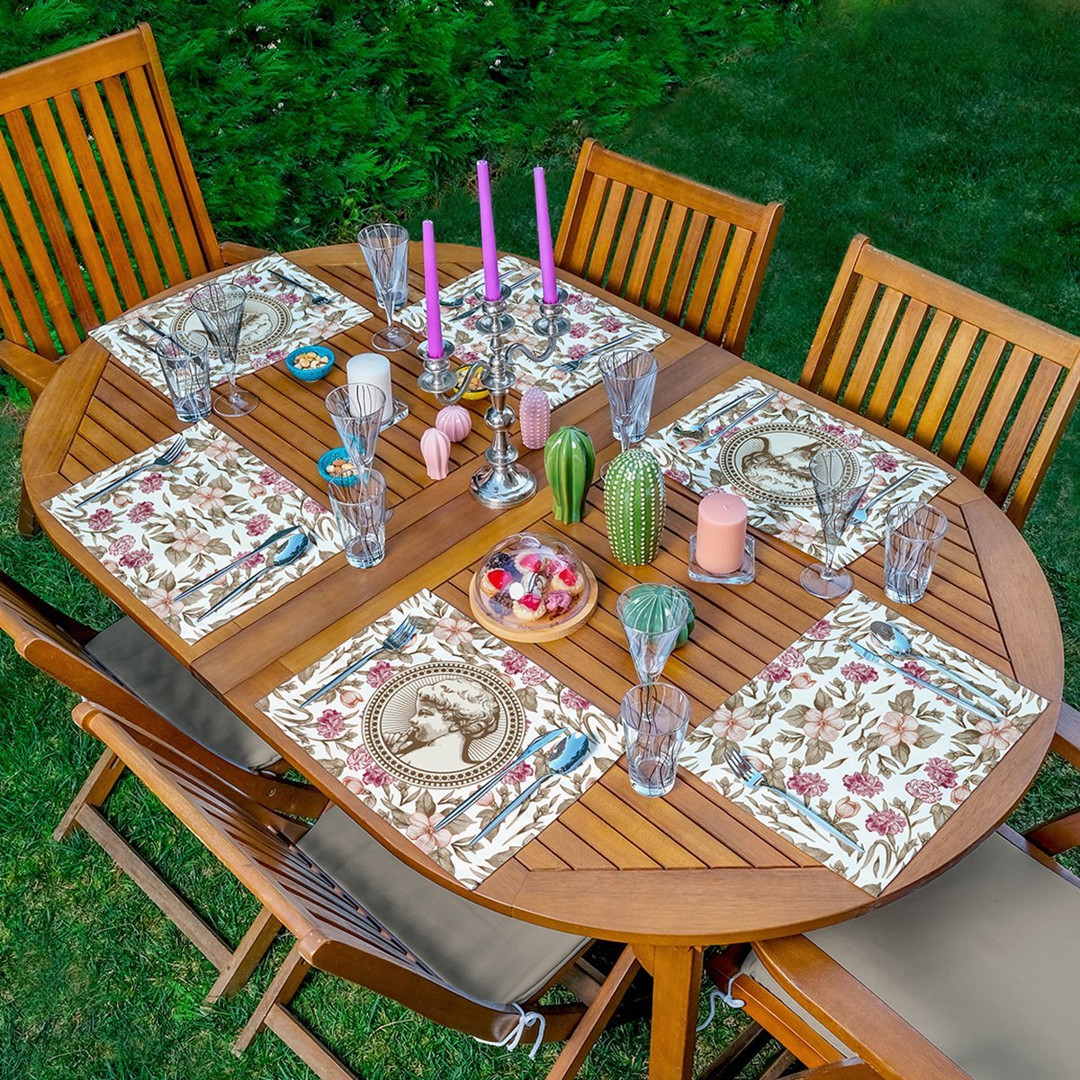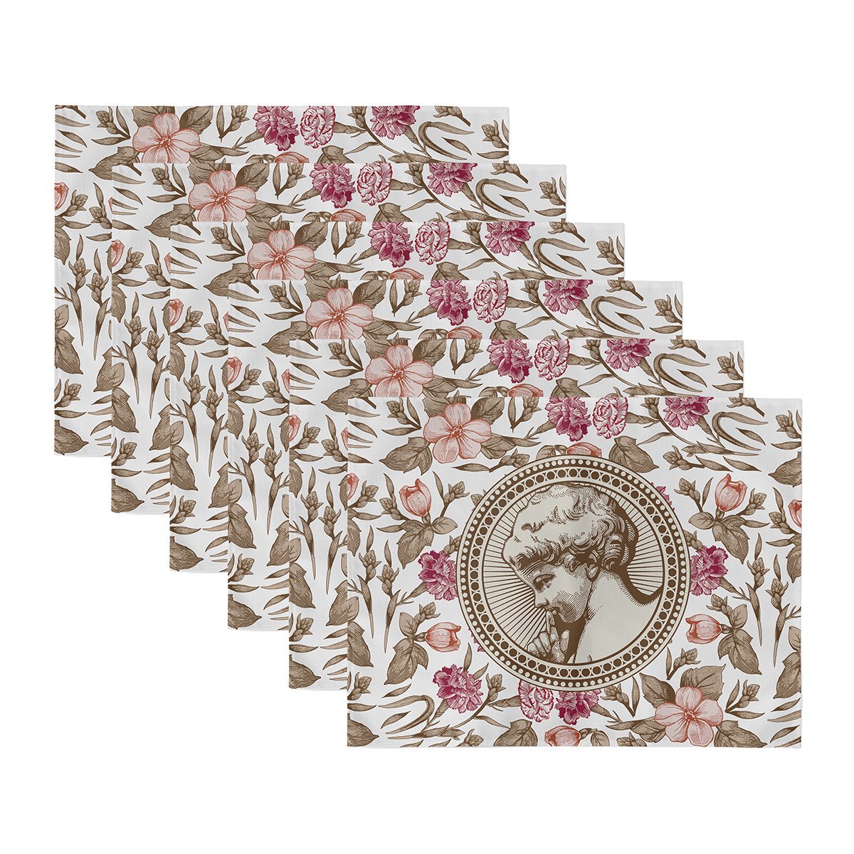 6’lı Krem Zemin Etnik Çizimli Amerikan Servis Seti