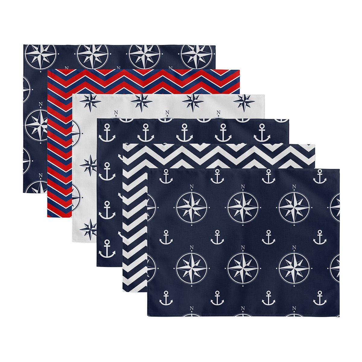 6’lı Laciver Denizci Desenli Özel Tasarımlı Amerikan Servis Seti
