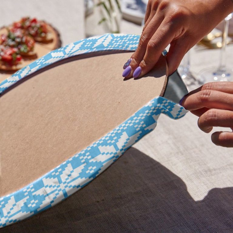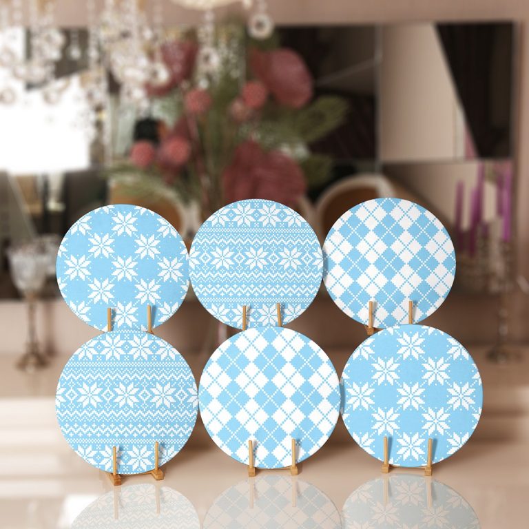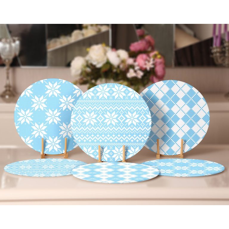 6’lı Mavi Kanaviçe Desenli Özel Tasarım Servis Altlığı & Supla