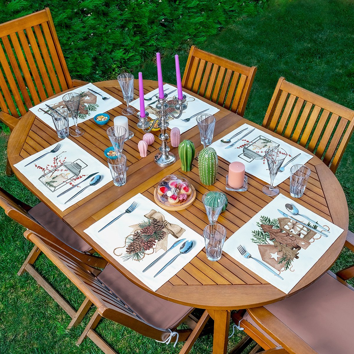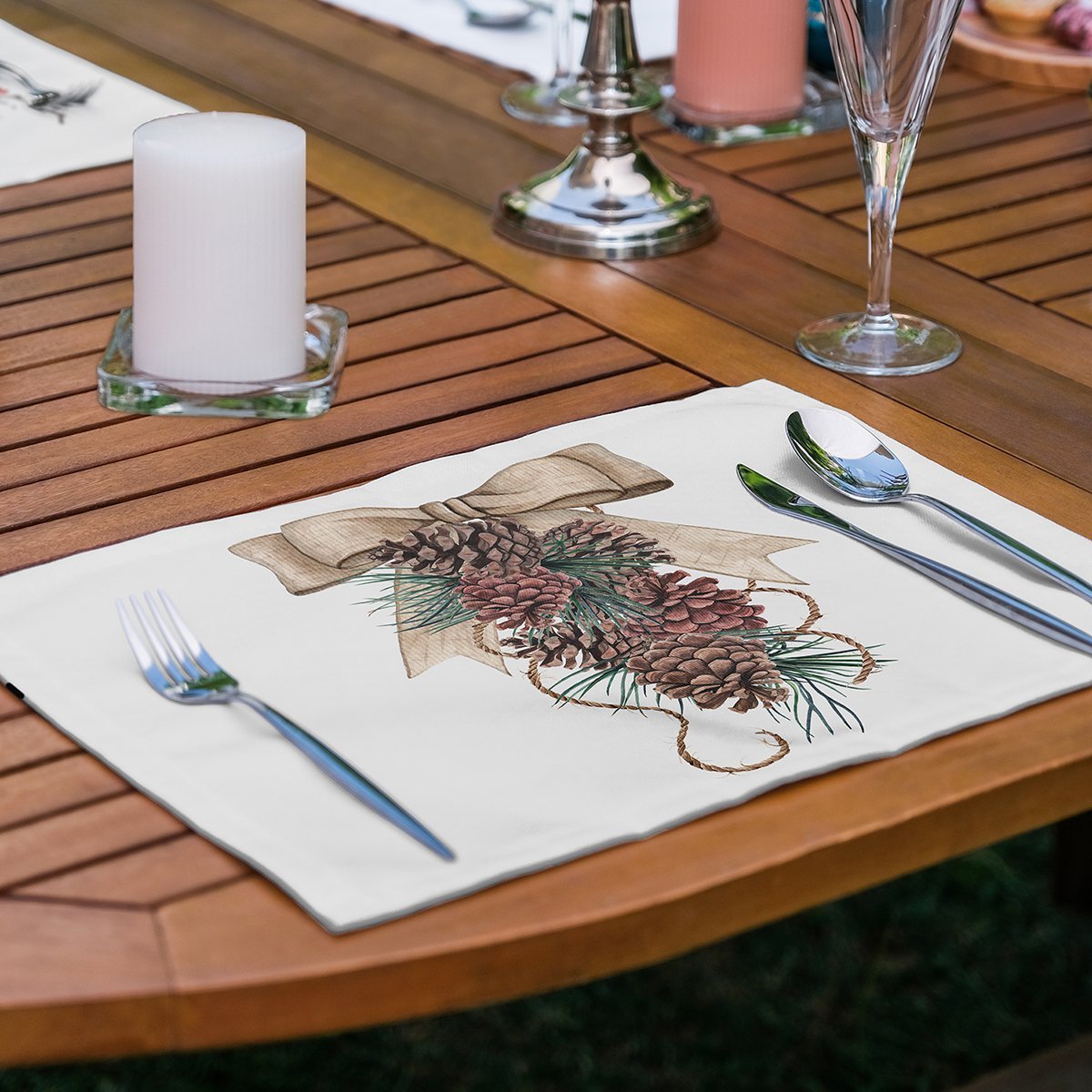 6’lı Özel Tasarım Mum & Kozalak Temalı Amerikan Servis Seti