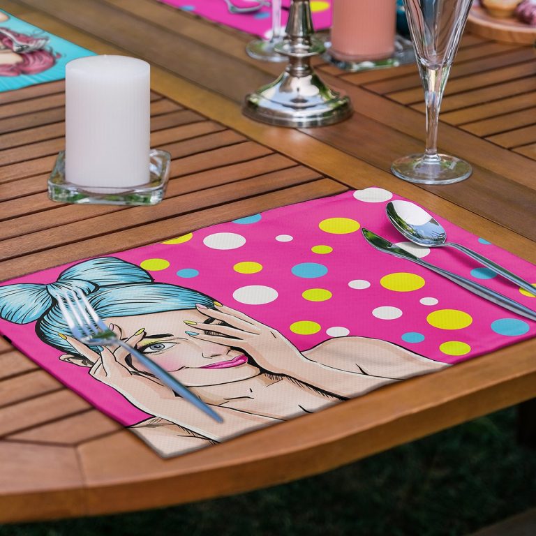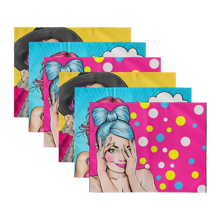 6’lı Özel Tasarım Pop-Art Kız Desenli Amerikan Servis Seti