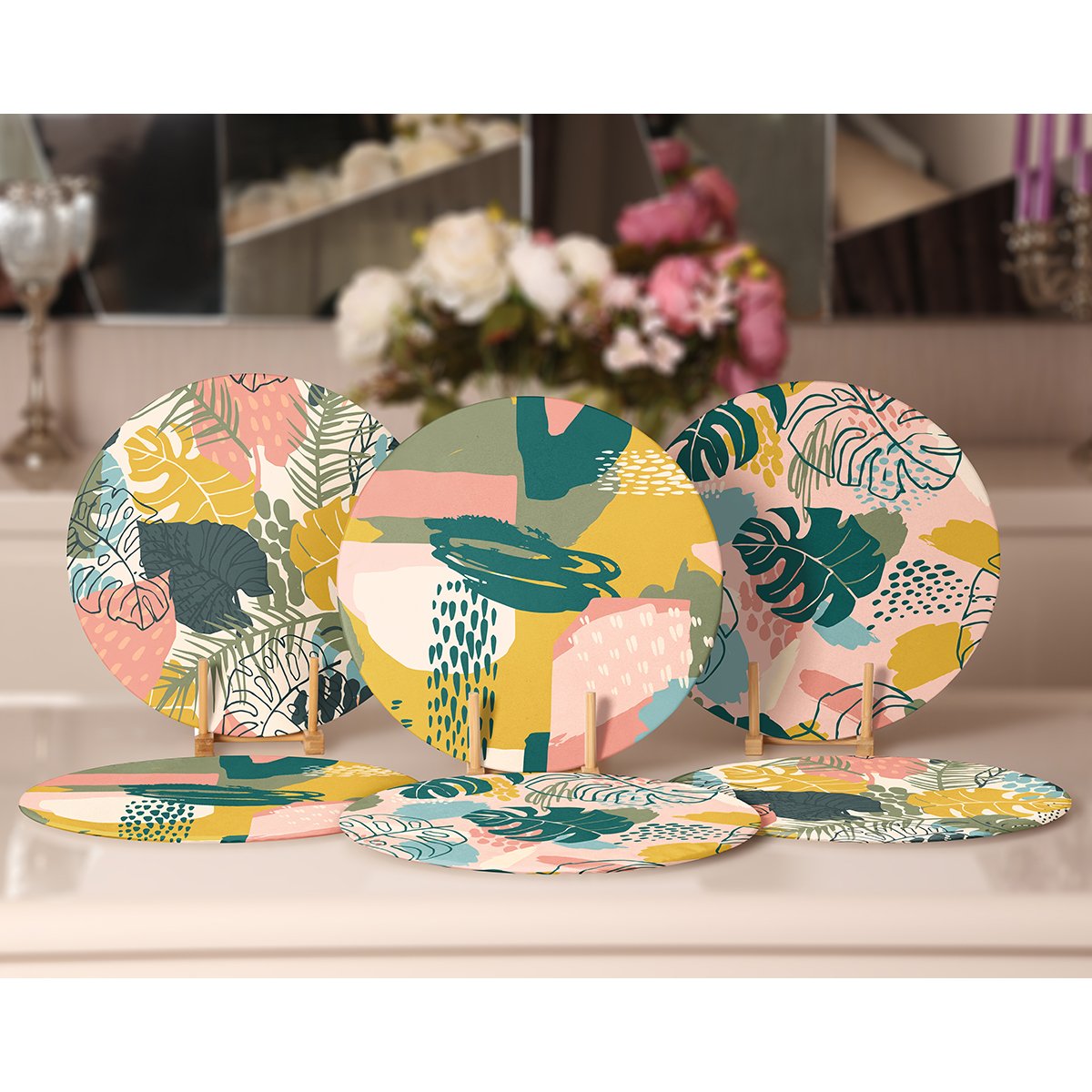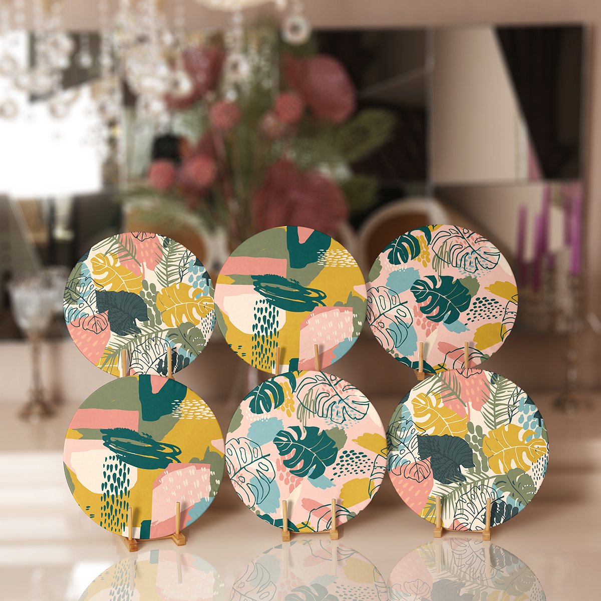 6’lı Pastel Renkli Tropik Yaprak Tasarımlı Servis Altlığı & Supla