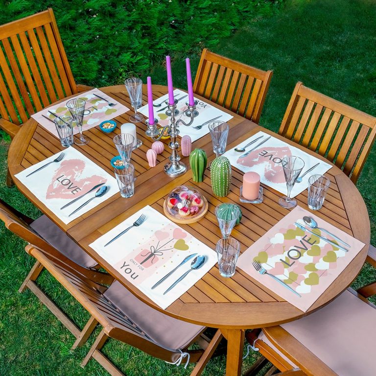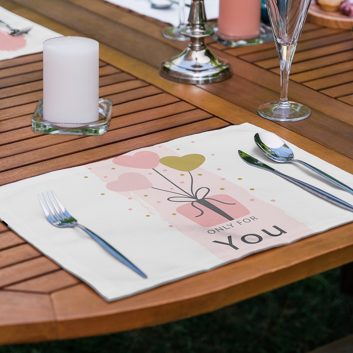 6’lı Pembe Love Desenli Amerikan Servis Seti