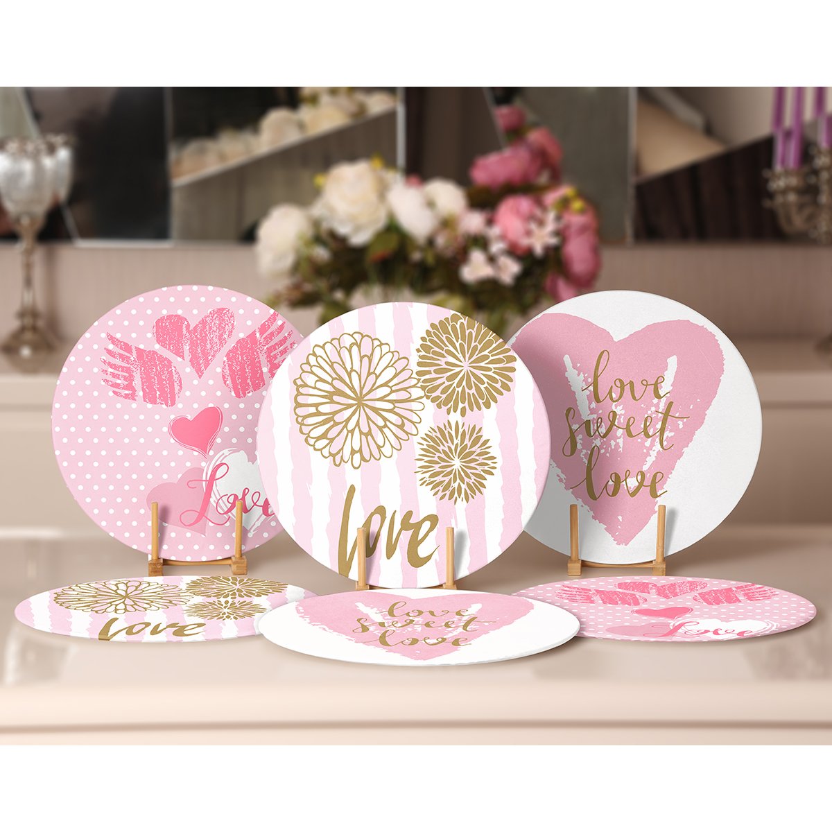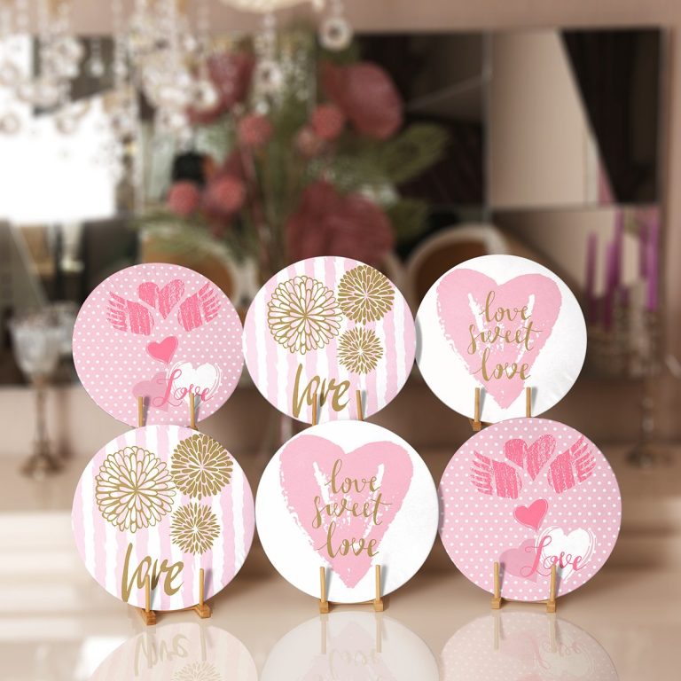 6’lı Pembe Renkli Özel Tasarım Love Motifli Servis Altlığı & Supla