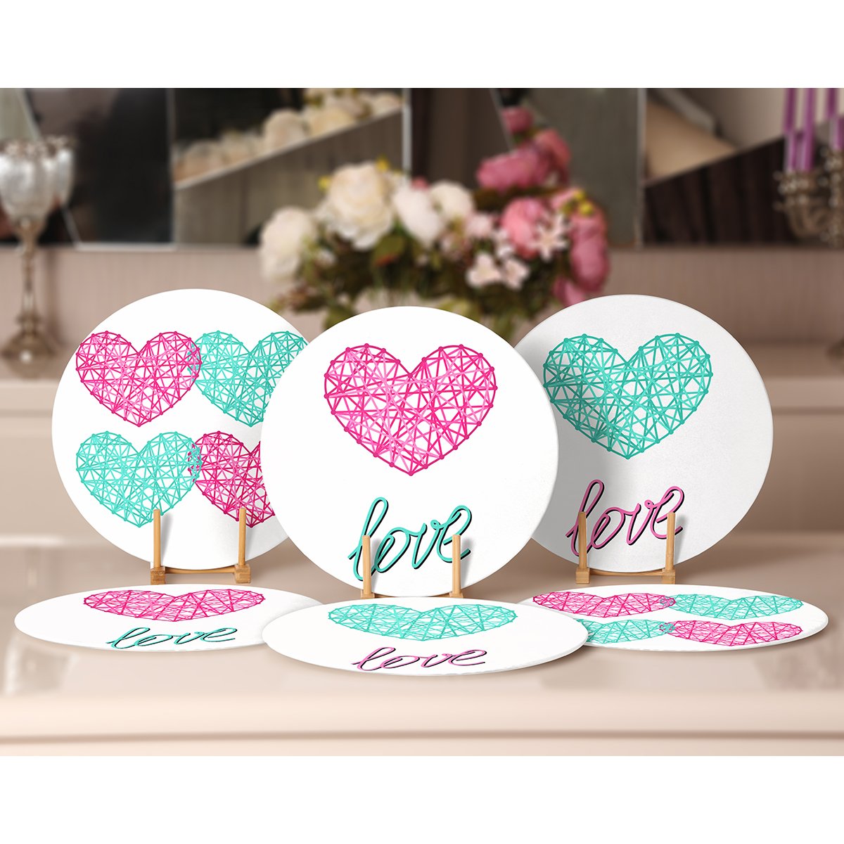 6’lı Renkli Love Tasarımlı Servis Altlığı & Supla