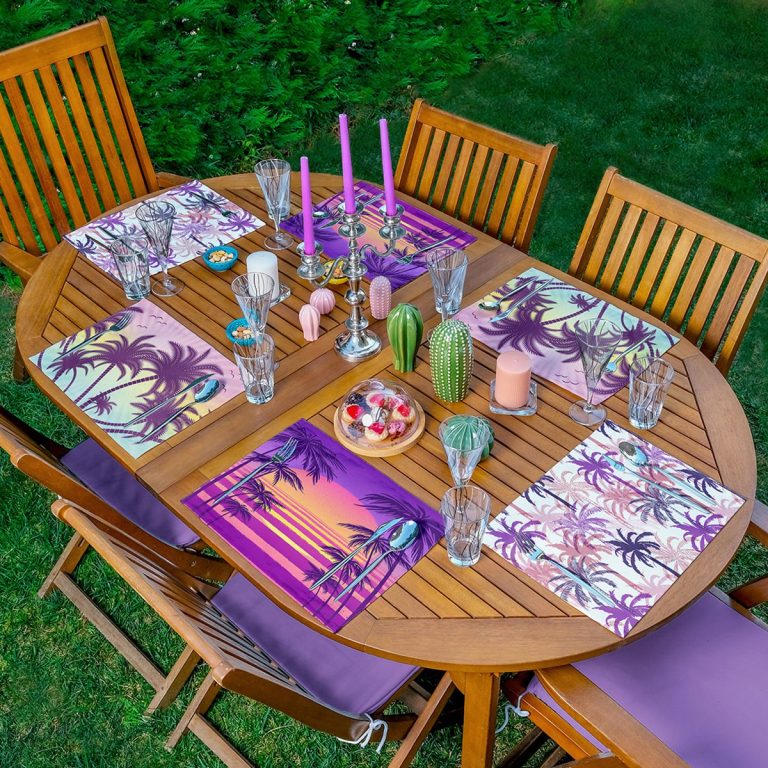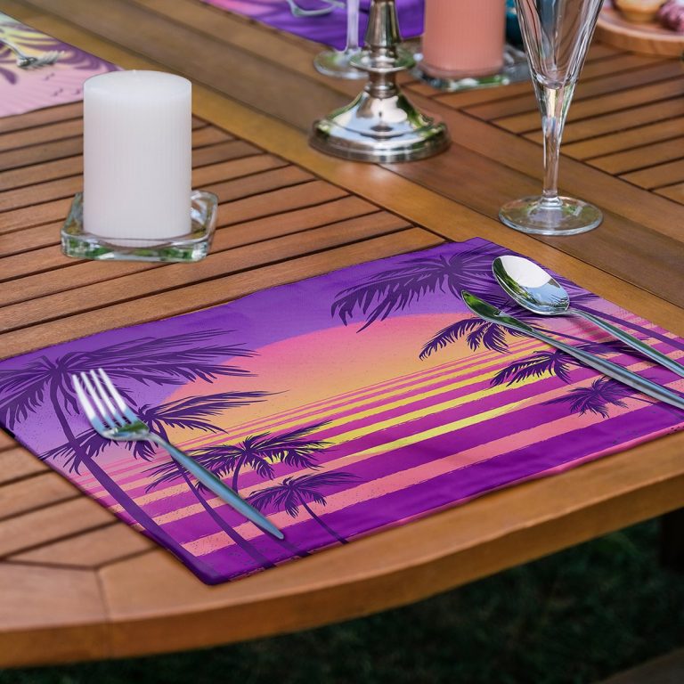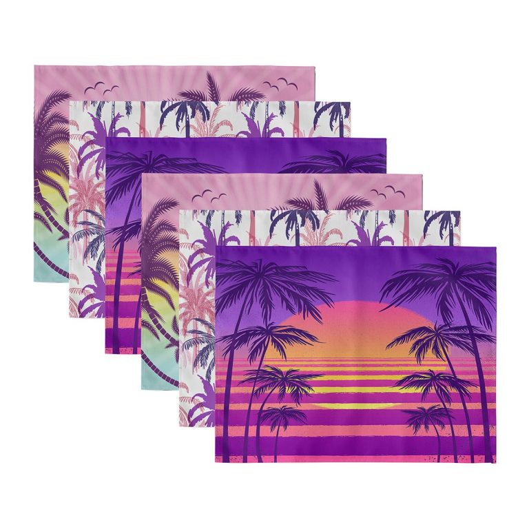 6’lı Renkli Palmiye Ağaçları Özel Tasarımlı Amerikan Servis Seti