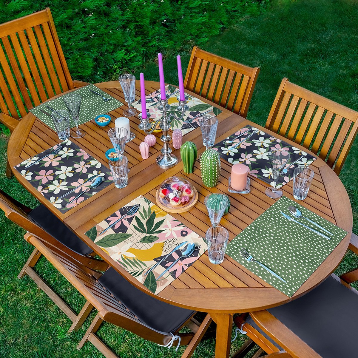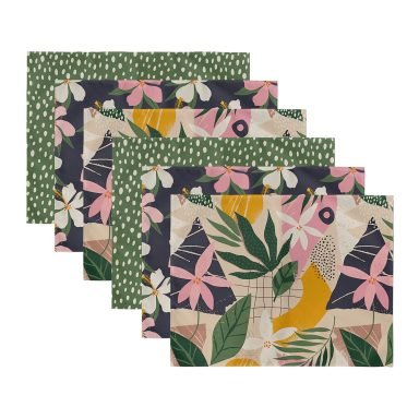 6’lı Renkli Yaprak Tasarımlı Amerikan Servis Seti