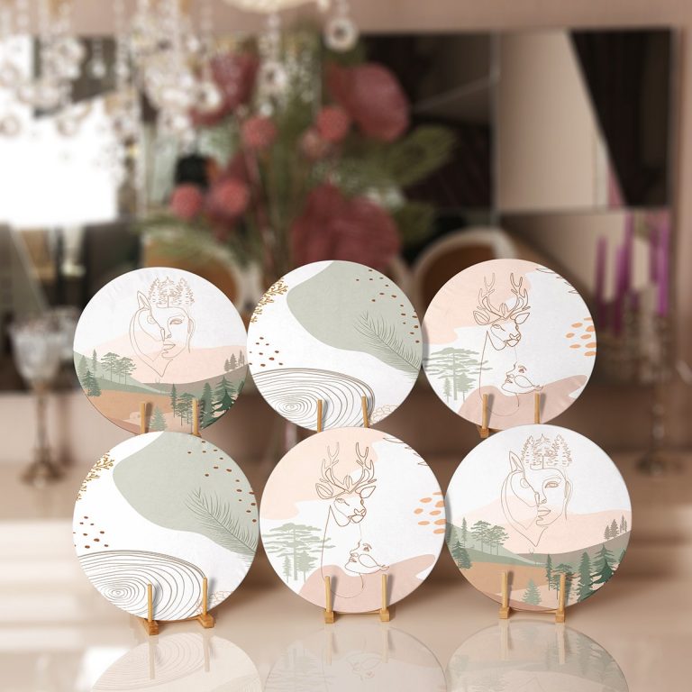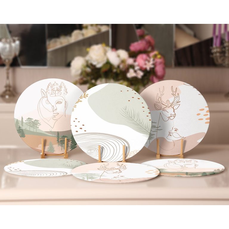 6’lı Renkli Zemin Üzerinde Onedraw Çizimli Bayan Silüeti Motifli Servis Altlığı & Supla