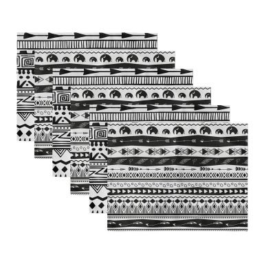 6’lı Siyah Beyaz Etnik Tasarımlı Amerikan Servis Seti