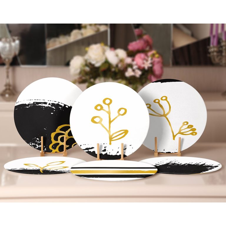 6’lı Siyah Beyaz Gold Detaylı Özel Tasarım Servis Altlığı & Supla