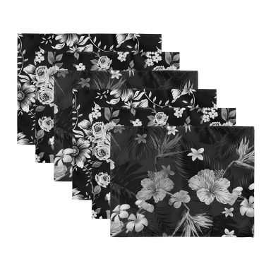 6’lı Siyah Beyaz Gül Motifli Amerikan Servis Seti