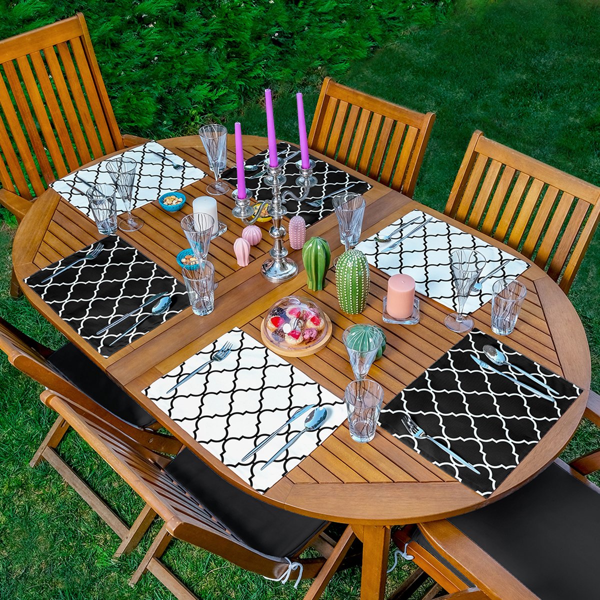 6’lı Siyah Beyaz Ogea Özel Tasarım Amerikan Servis Seti