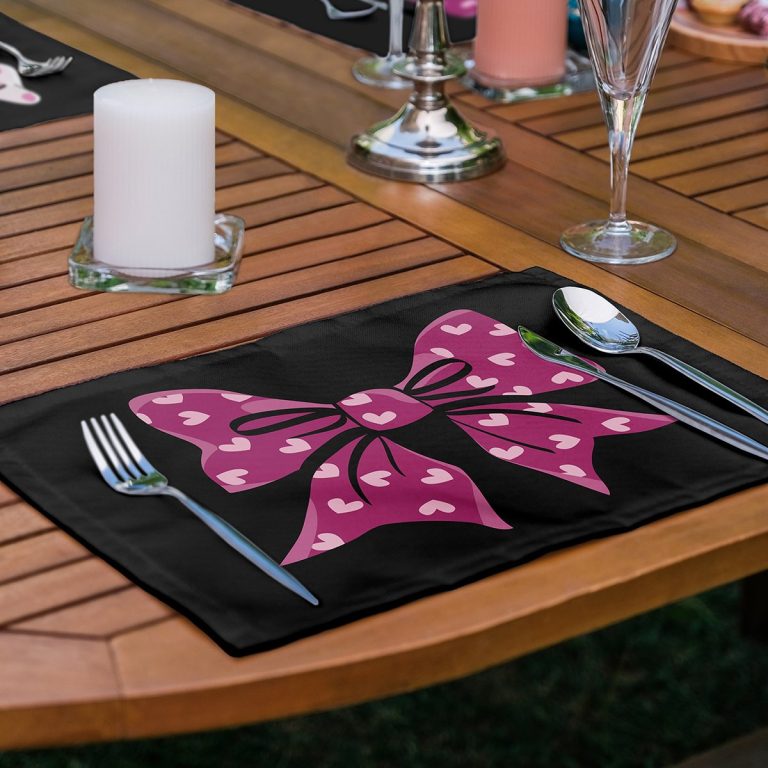6’lı Siyah Zemin Pembe Kurdele Tasarımlı Amerikan Servis Seti