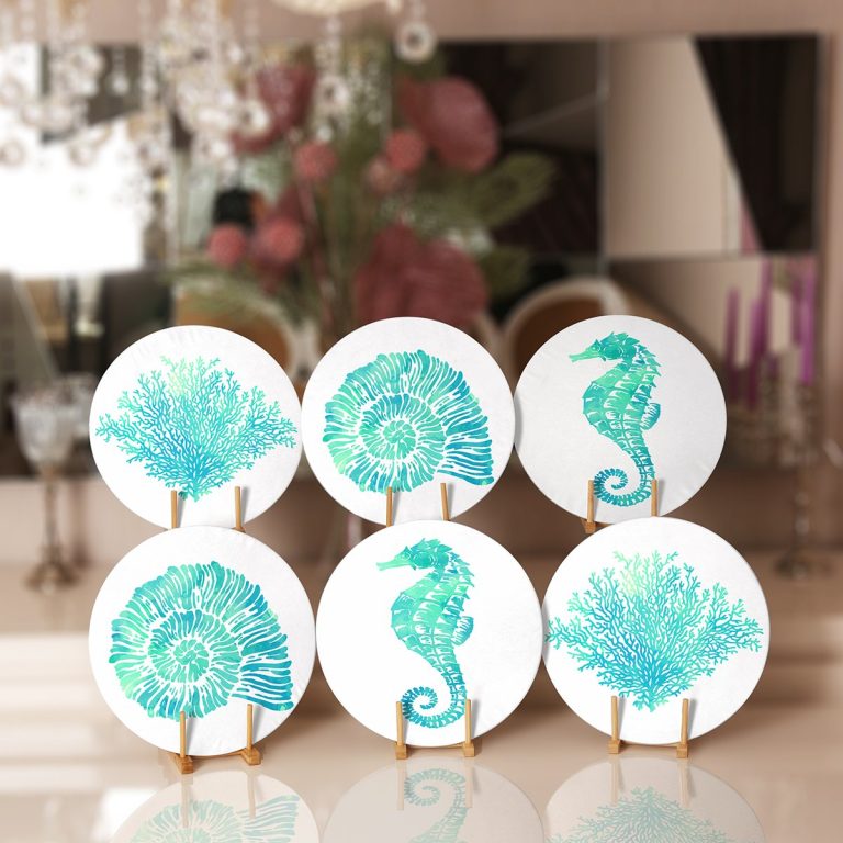 6’lı Turkuaz Deniz Canlıları Özel Tasarım Servis Altlığı & Supla