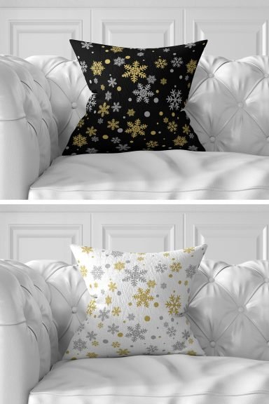 7’li Çam Ağacı & Kar Tanesi Tasarımlı Dijital Baskılı Kırlent Kılıfı Seti