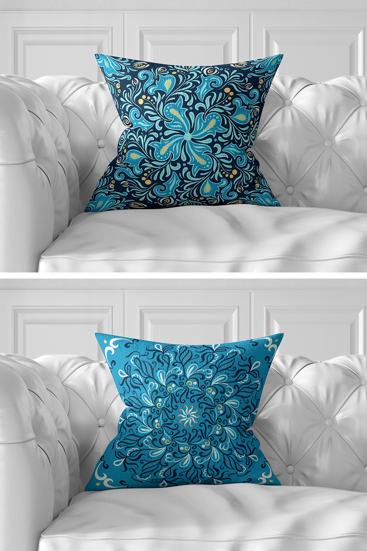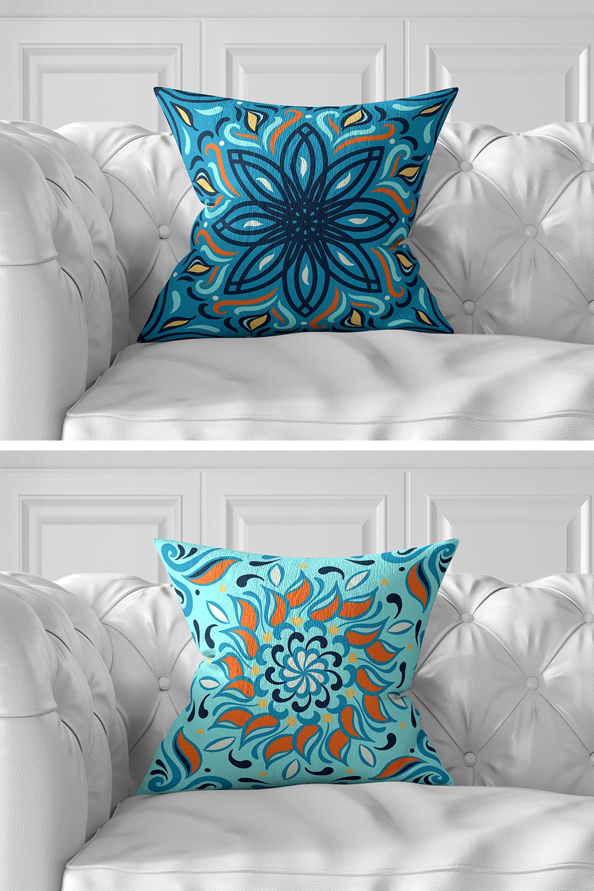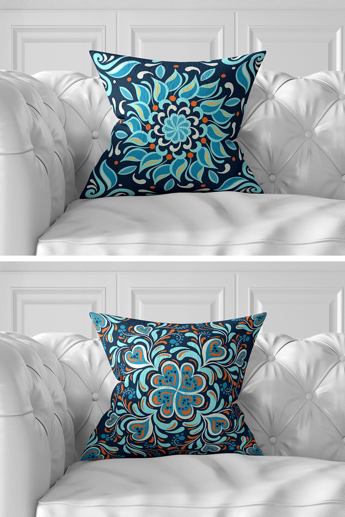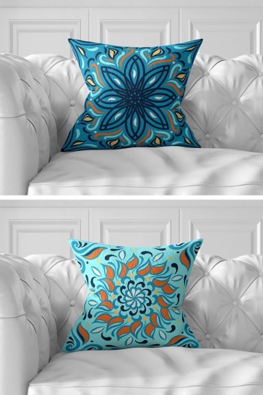 7’li Mavi Renkli Mandala Tasarımlı Dijital Baskılı Kırlent Kılıfı Seti