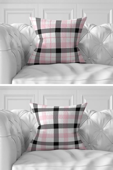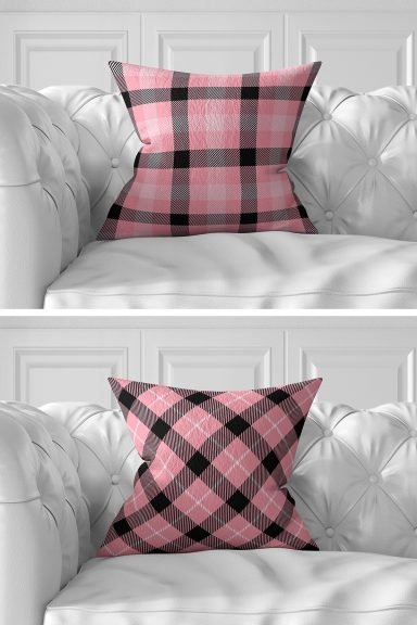 7’li Pembe Ekose Tasarımlı Dijital Baskılı Kırlent Kılıfı Seti