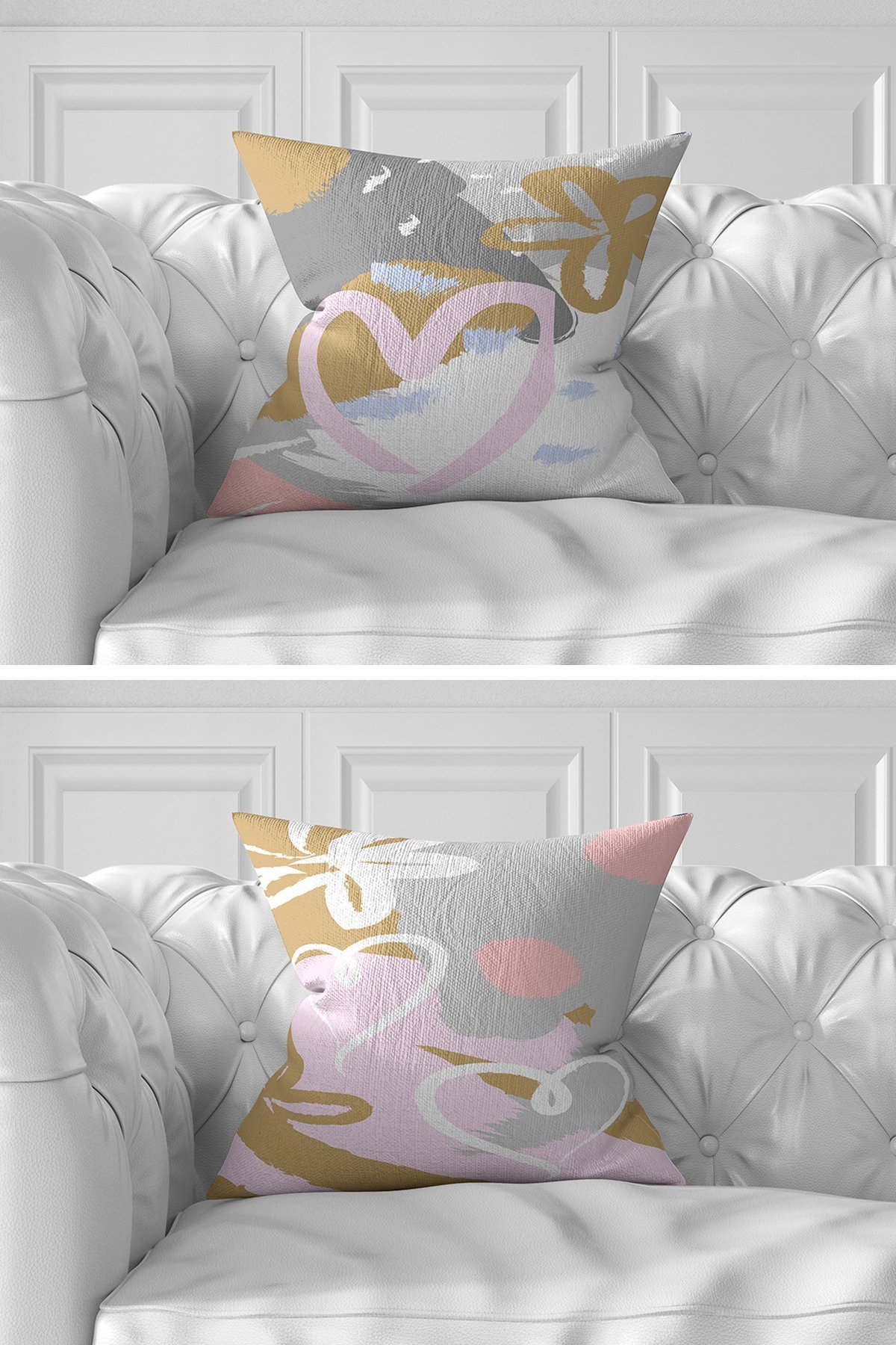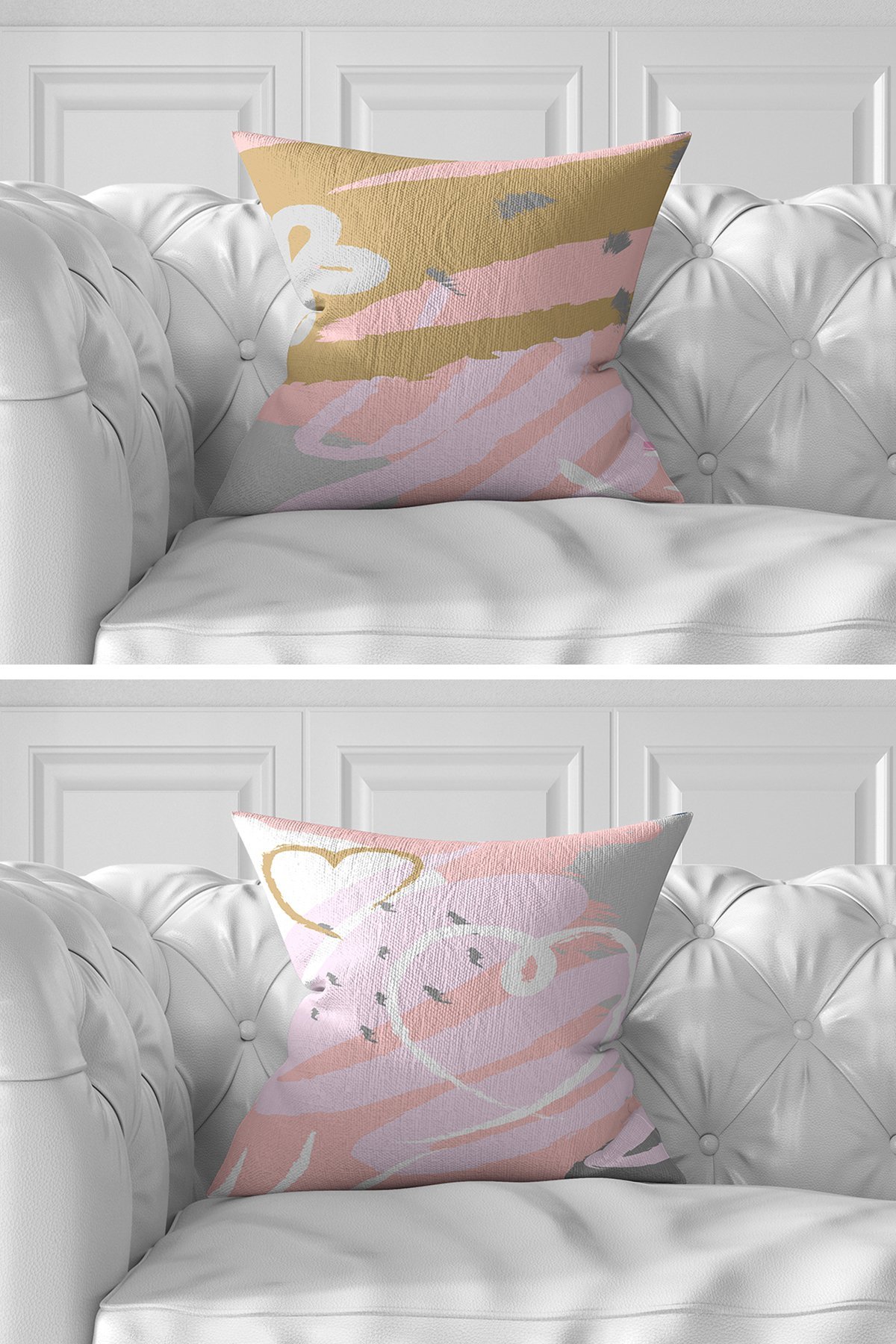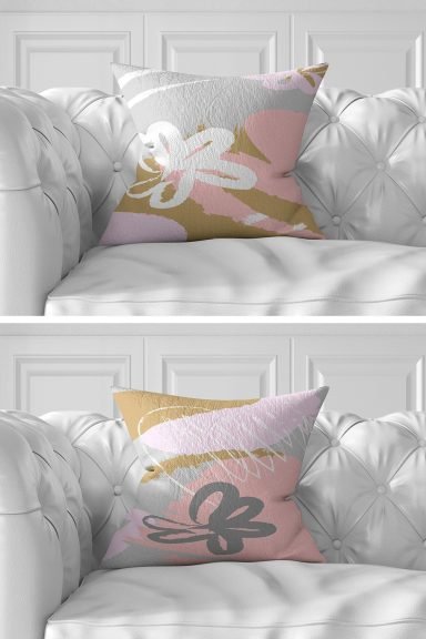 7’li Pembe Renkli Pastel Çizimli Dijital Baskılı Kırlent Kılıfı Seti