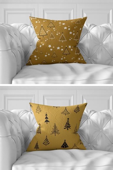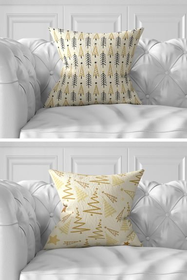 7’li Renkli Çam Ağacı Çizimli Dijital Baskılı Kırlent Kılıfı Seti