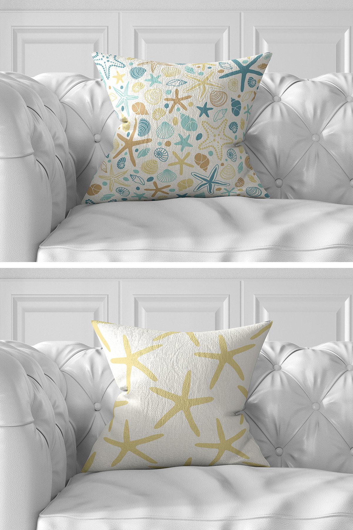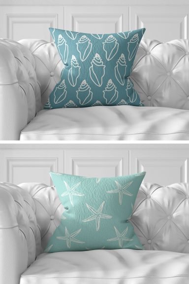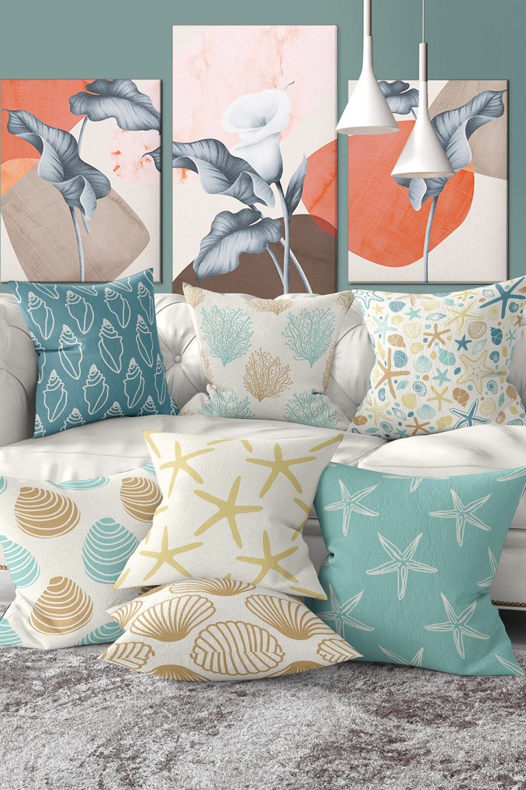 7’li Renkli Deniz Mahsülleri Özel Tasarımlı Dijital Baskılı Kırlent Kılıfı Seti