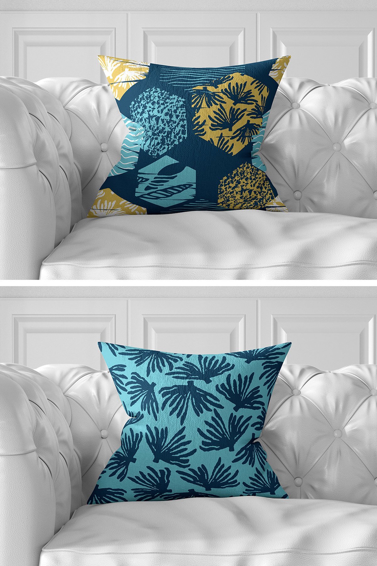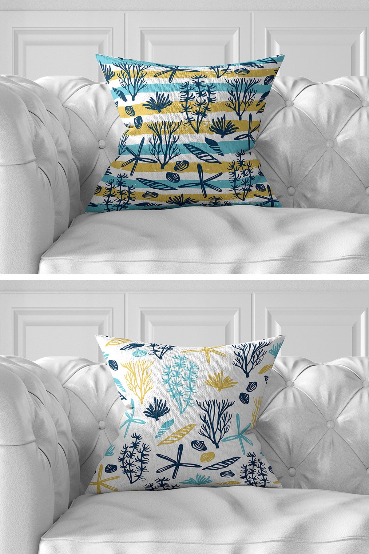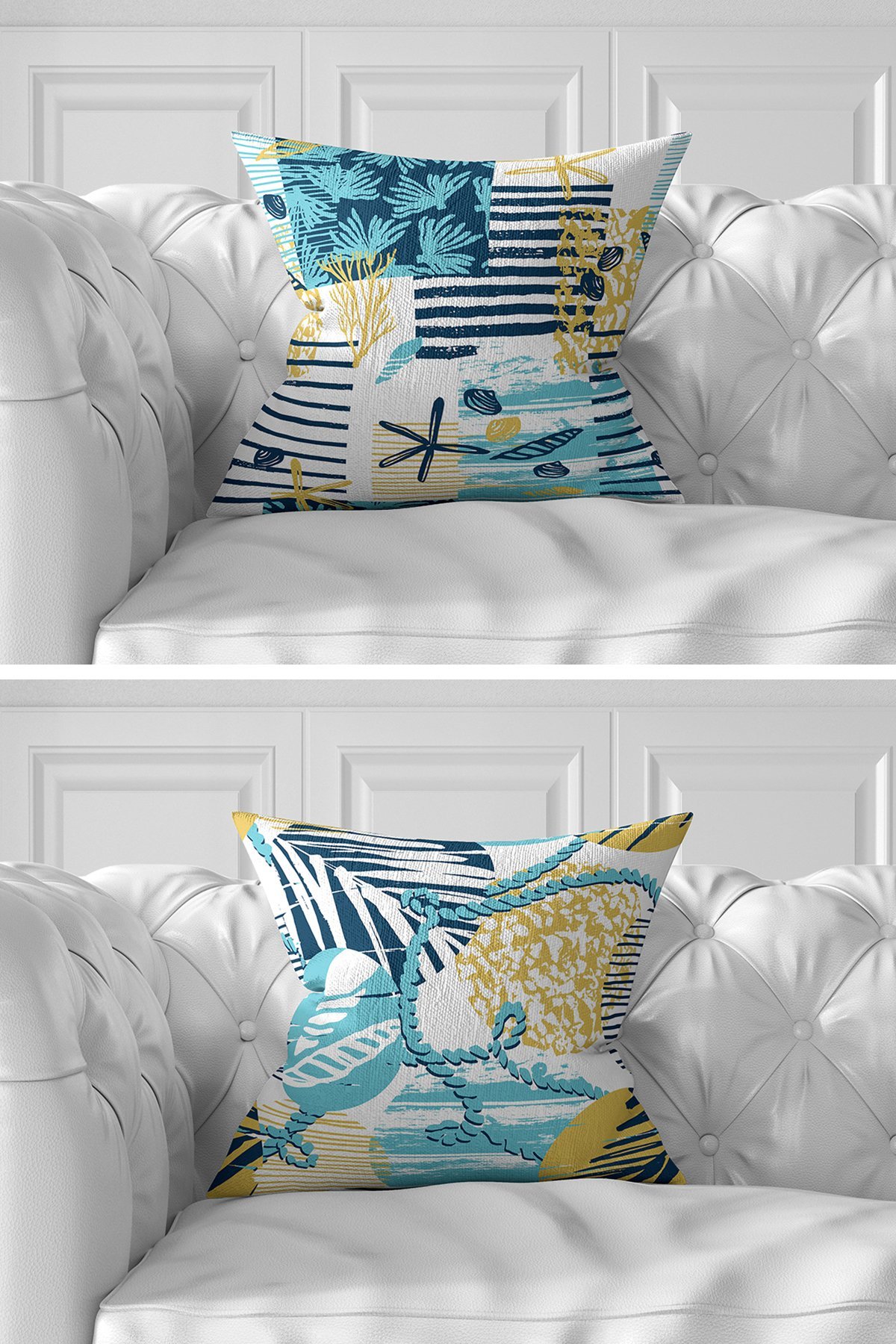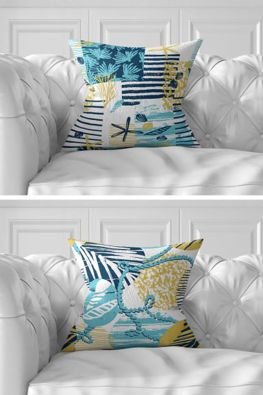7’li Renkli Deniz Yosunu Tasarımlı Dijital Baskılı Kırlent Kılıfı Seti