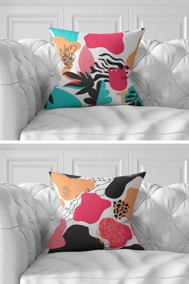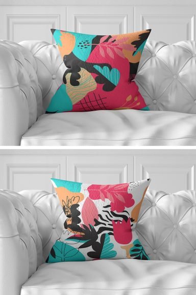 7’li Renkli Egzotik Yaprak Tasarımlı Dijital Baskılı Kırlent Kılıfı Seti