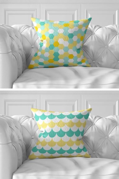 7’li Renkli Geometrik Çizimli Dijital Baskılı Kırlent Kılıfı Seti