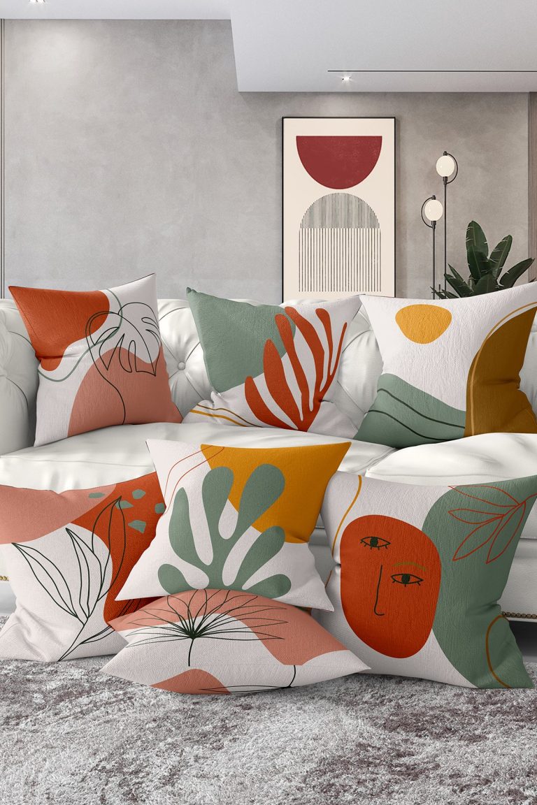 7’li Renkli Pastel Onedraw Çizimli Dijital Baskılı Kırlent Kılıfı Seti