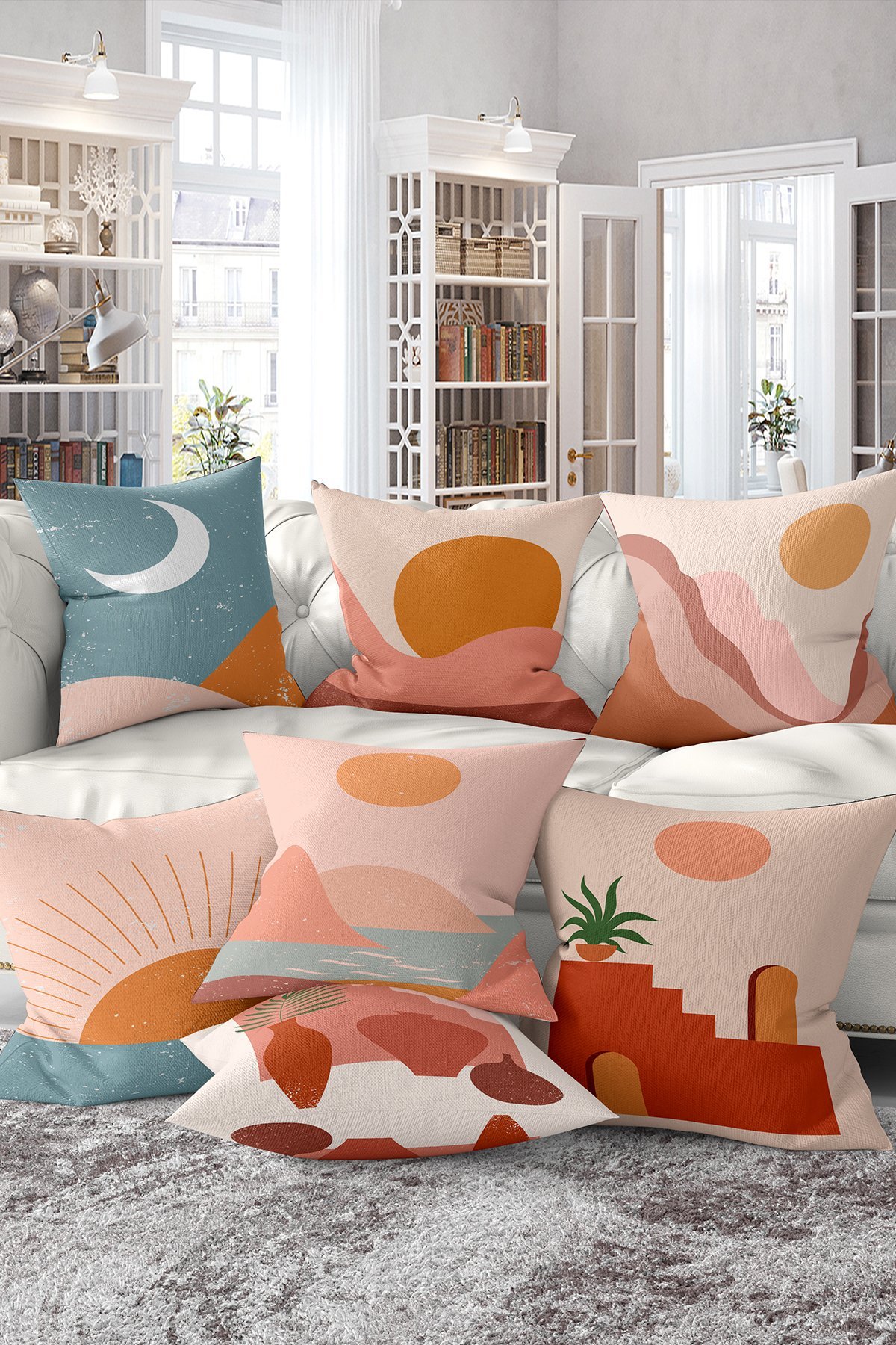 7’li Soyut Minimalist Tasarımlı Dijital Baskılı Kırlent Kılıfı Seti